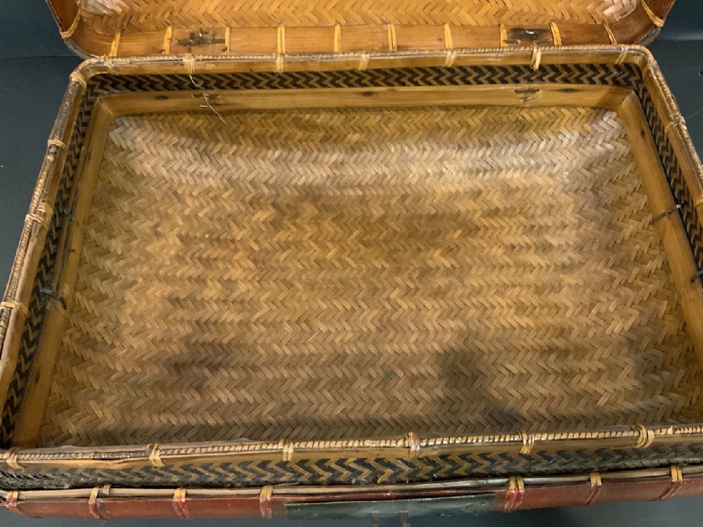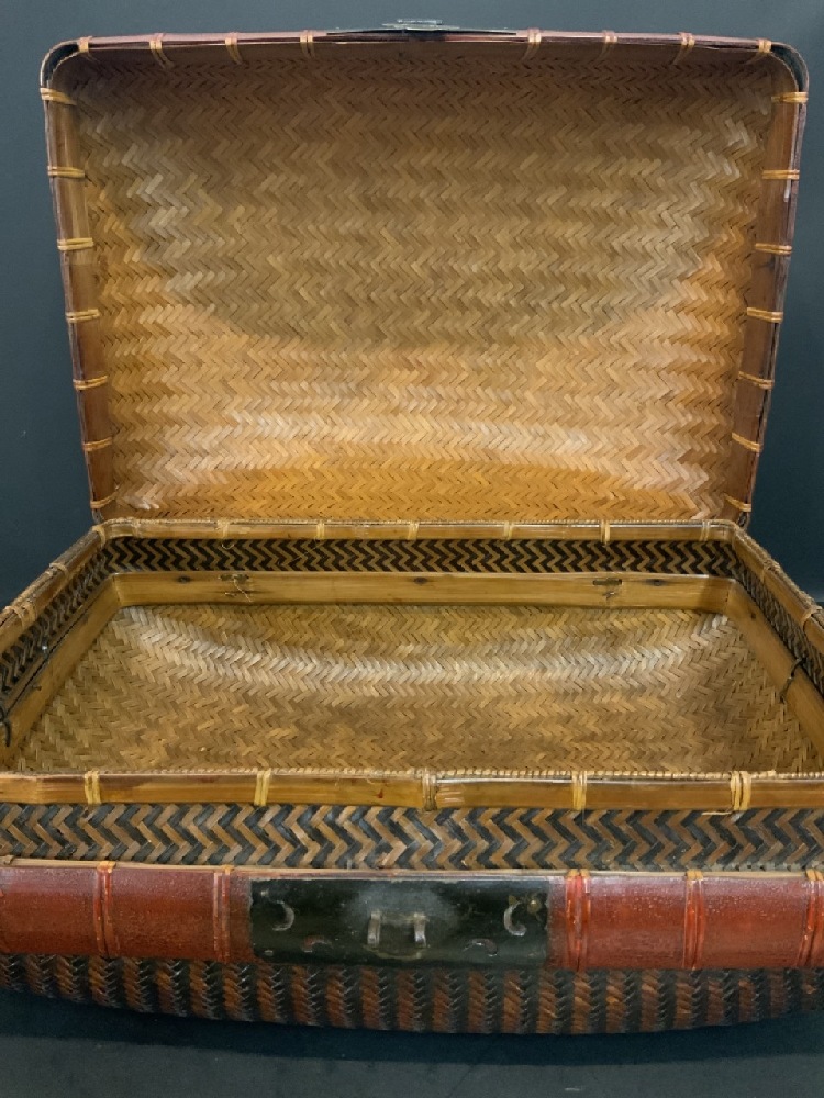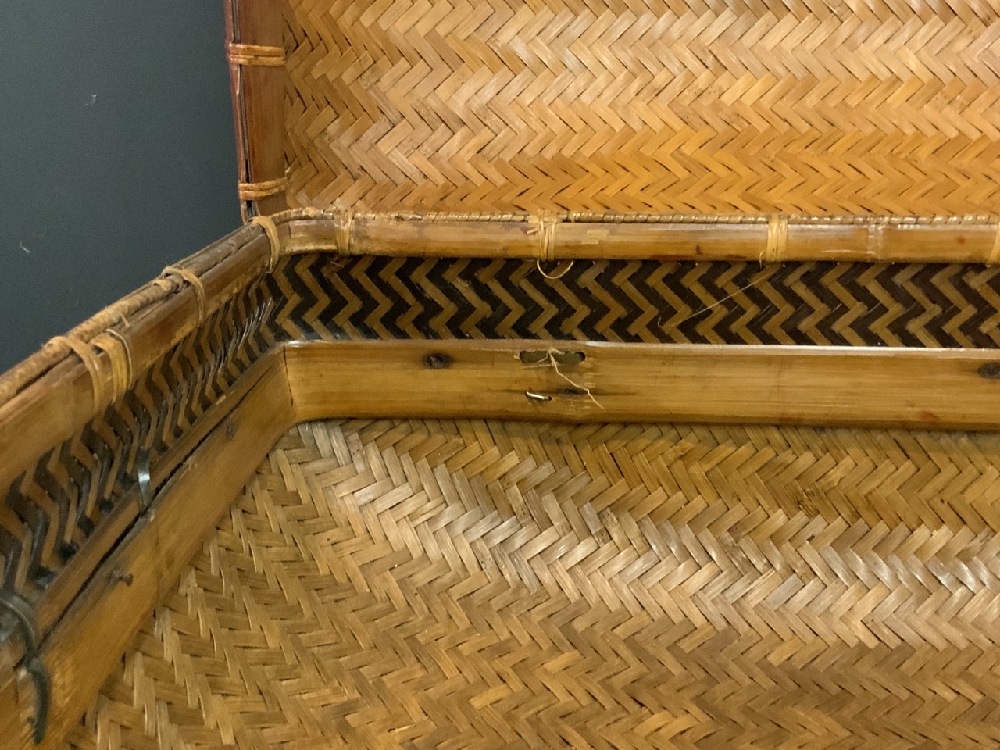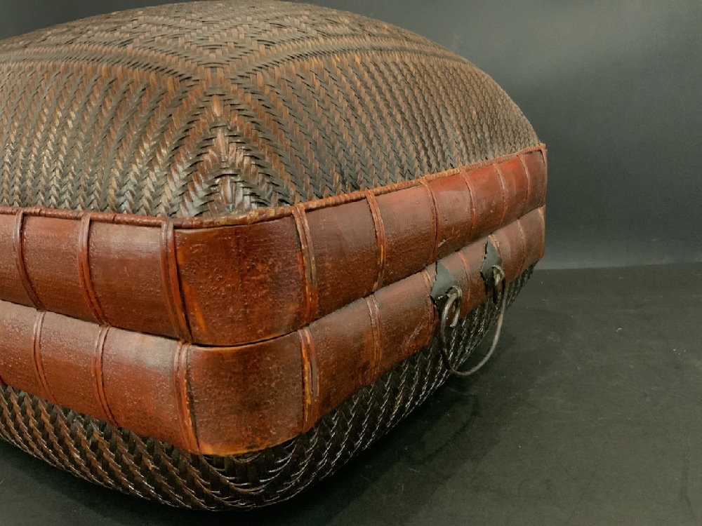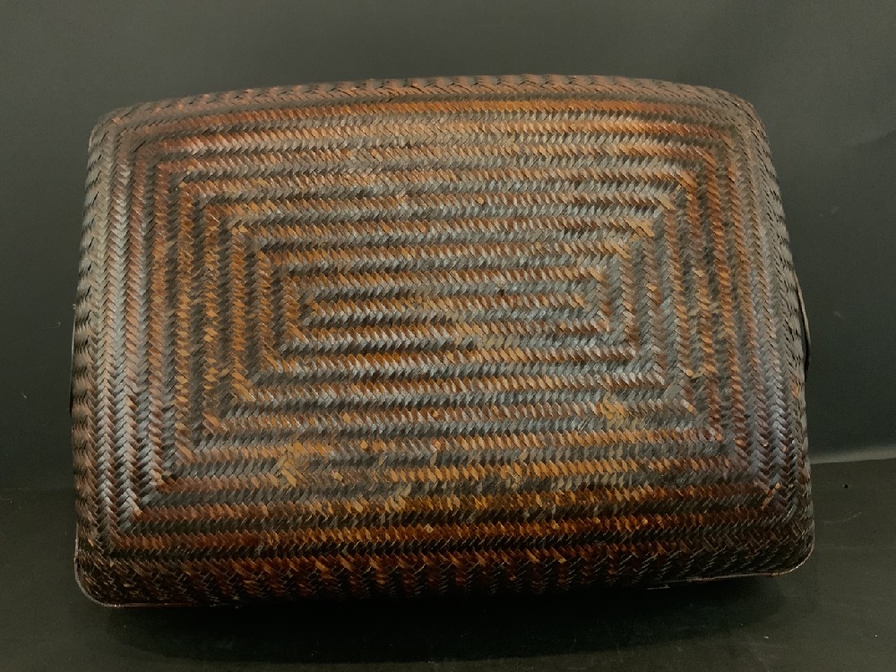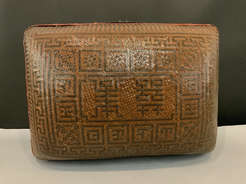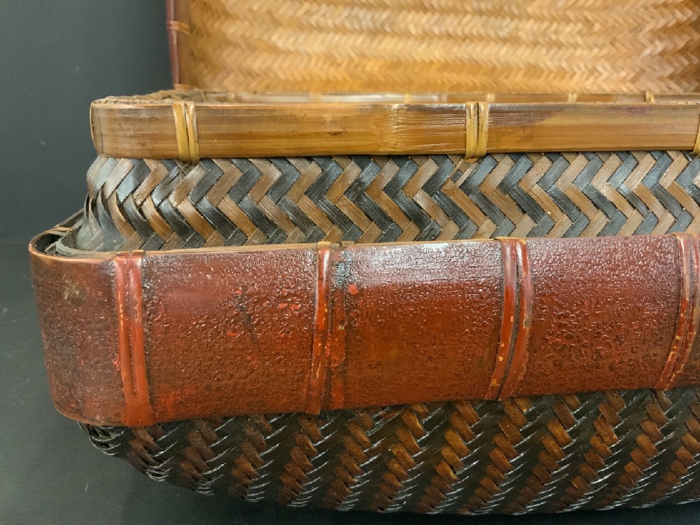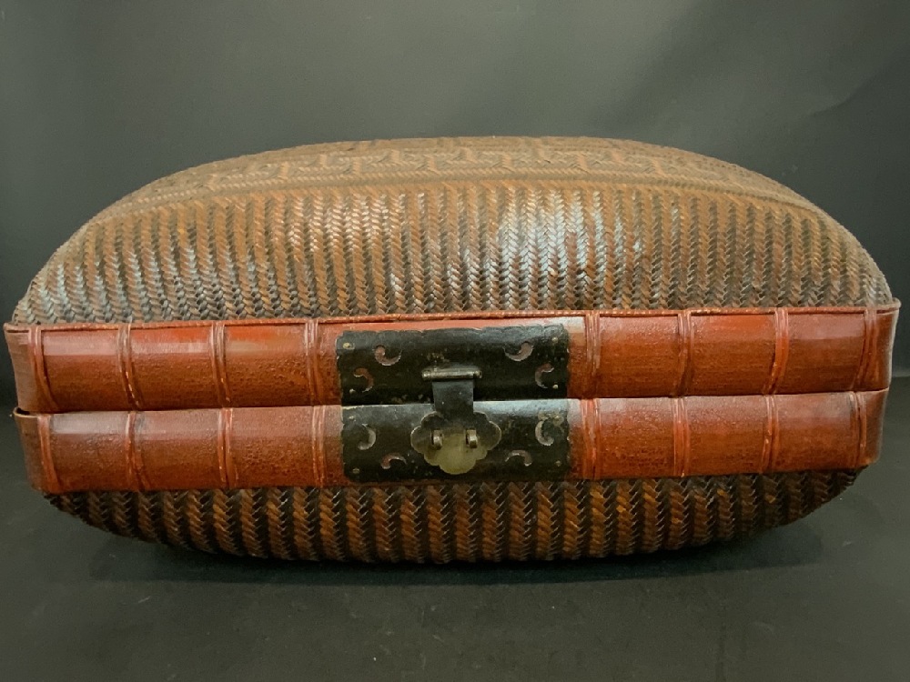 Chinese Woven Rattan and Bamboo Pillow Basket