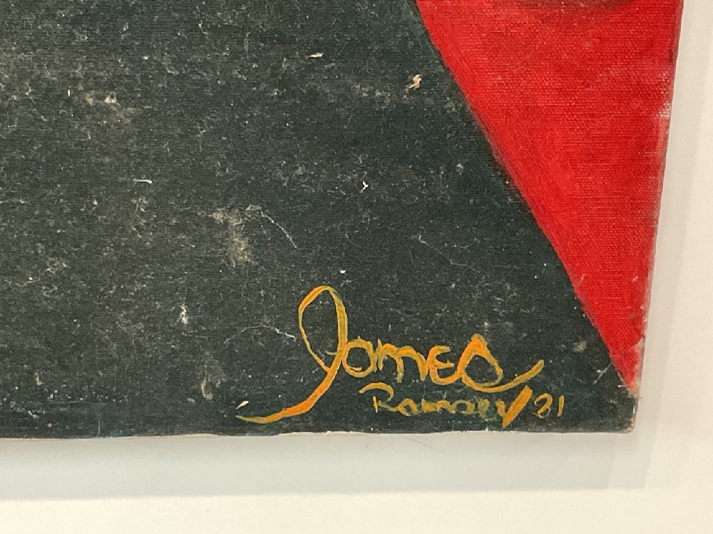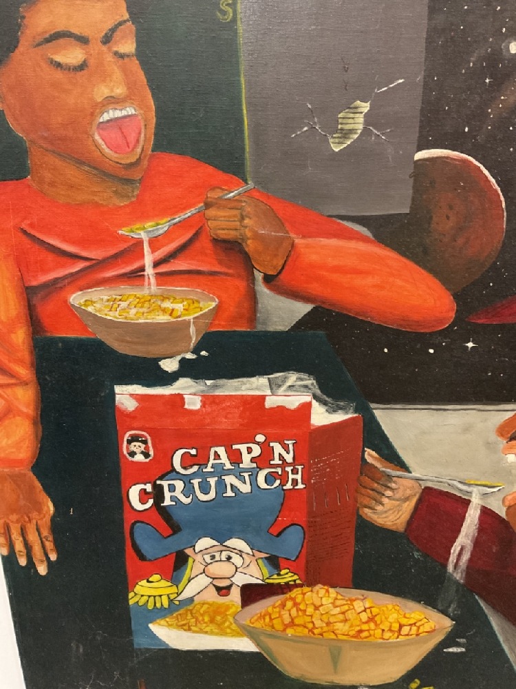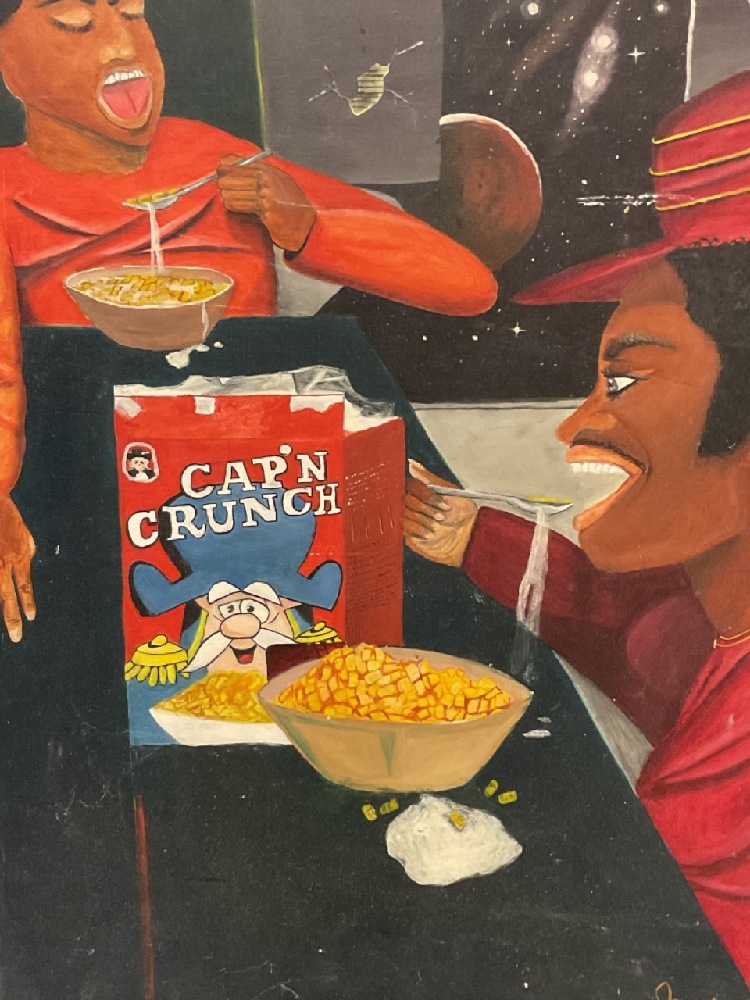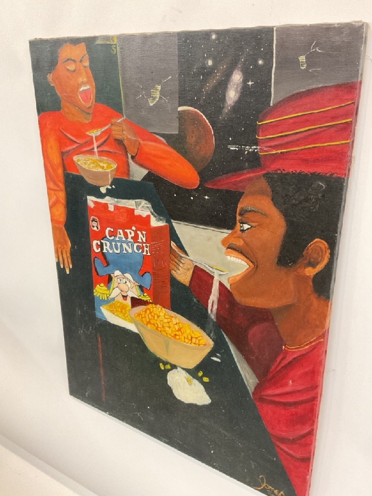 James Ramsey Dated 1981 Black Americana Oil Painting and Capt. Crunch Cereal.