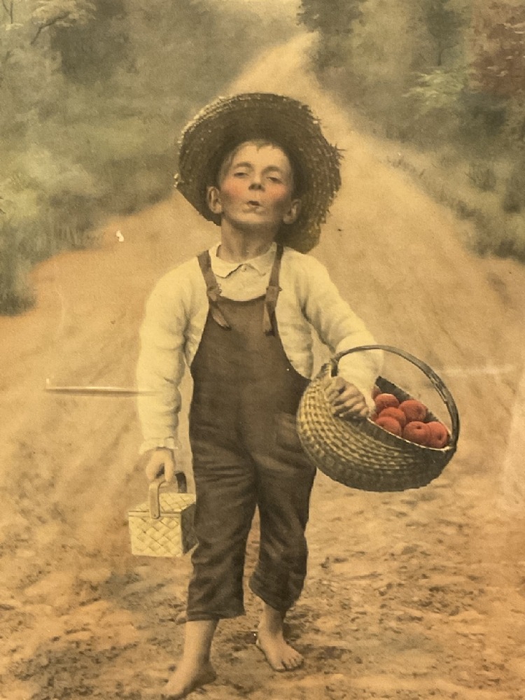 Antique hand tinted photograph. Johnny Appleseed....