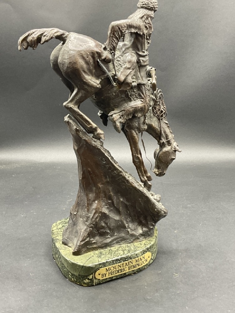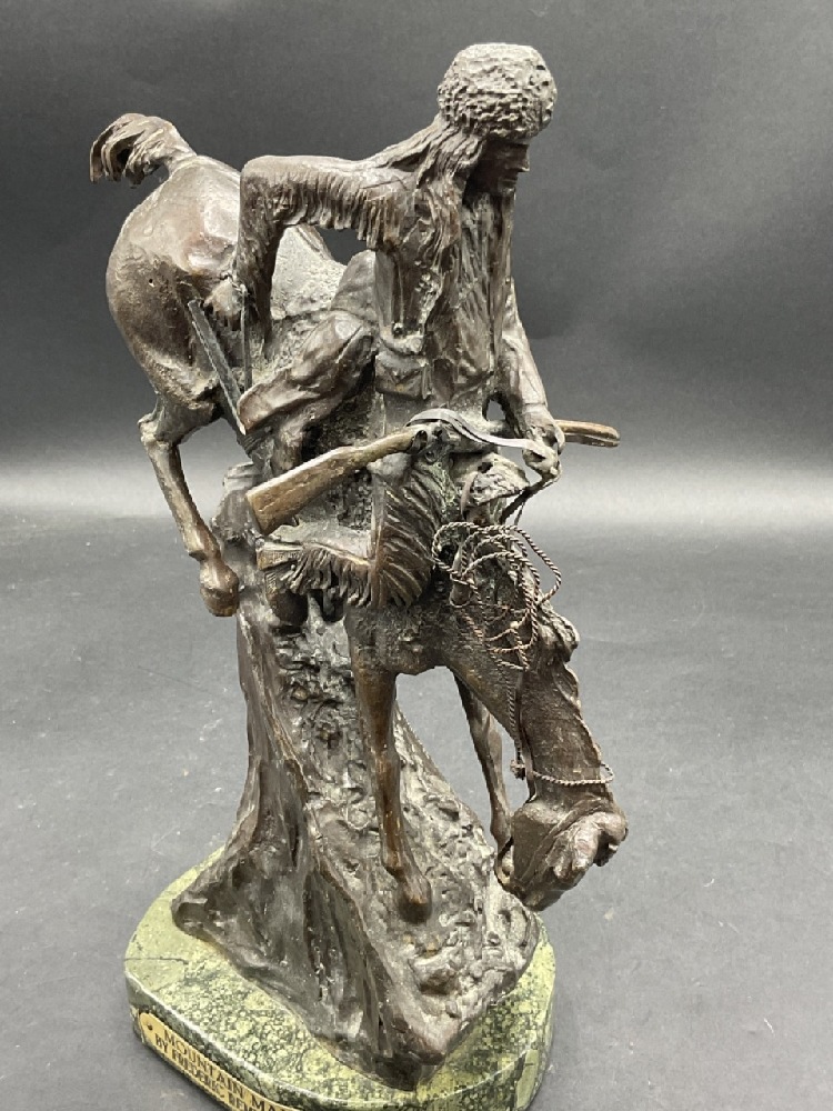 Remington bronze "Mountain Man" sculpture with green marble base.