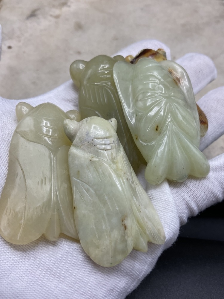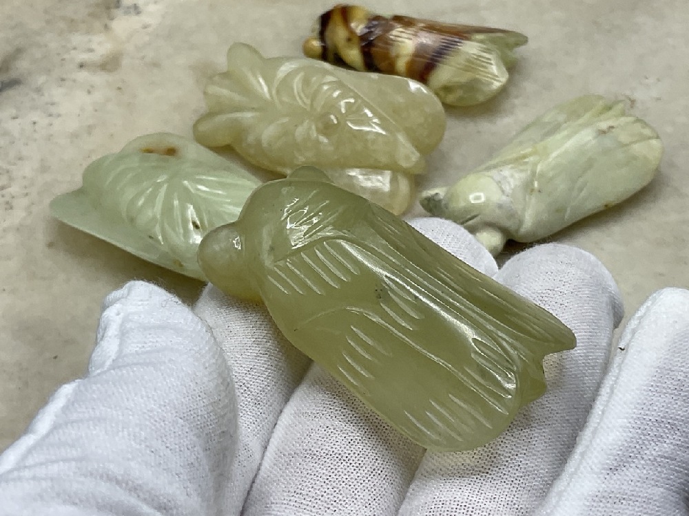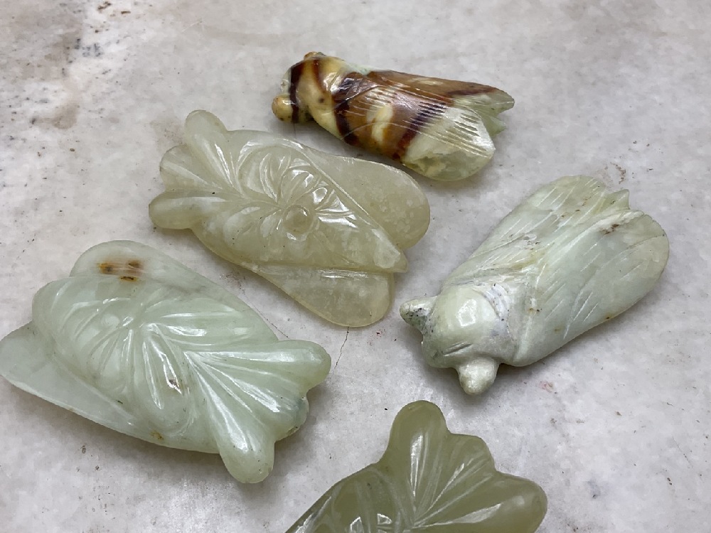 Five (5) Carved Chinese Jade Katydid.