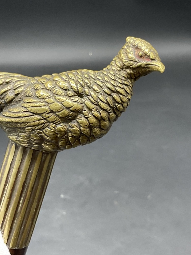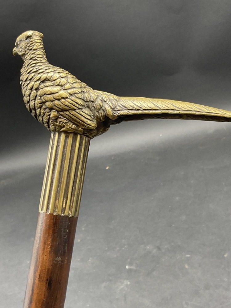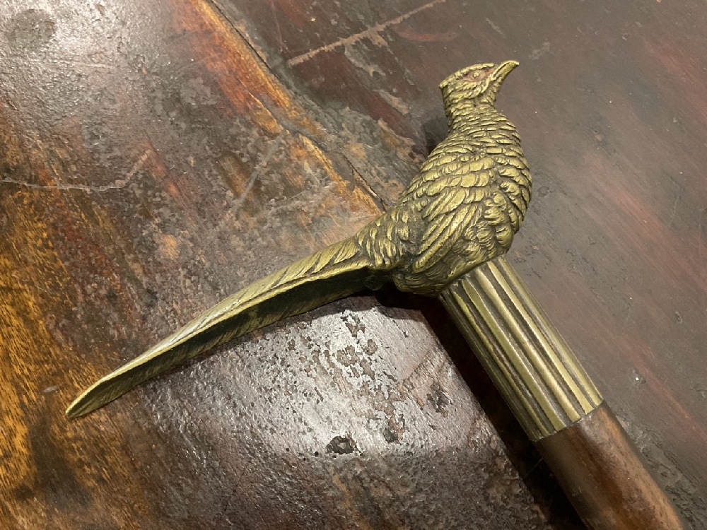 Antique Bronze Pheasant Cane Handle and Cane.