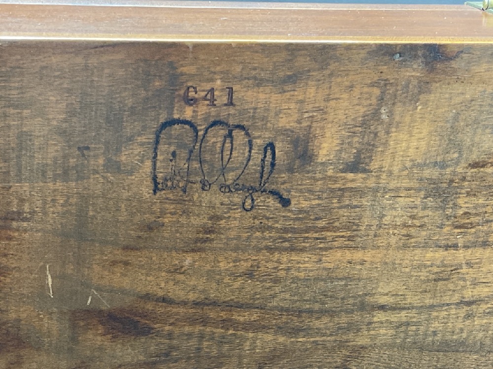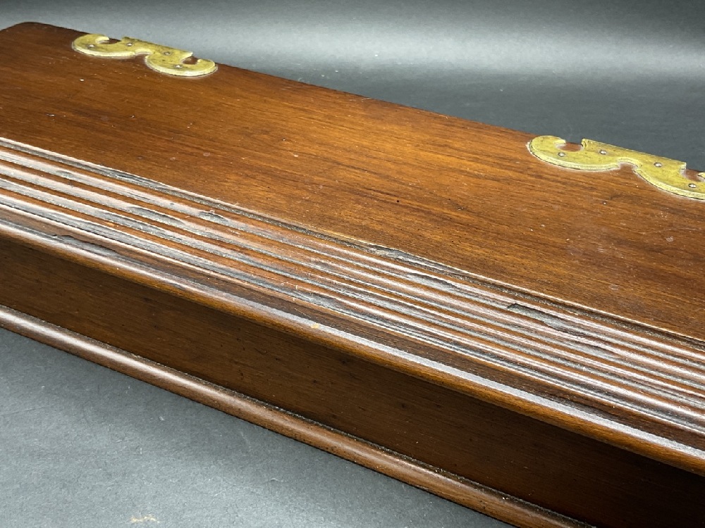 Mahogany Dresser Valuables or Glove Box with brass hardware. Signed at base illegibly.