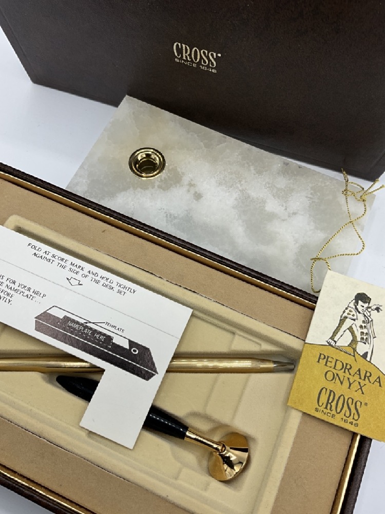 Cross Desk Set With Pen. Unused. Includes Pedrara Onyx base.
