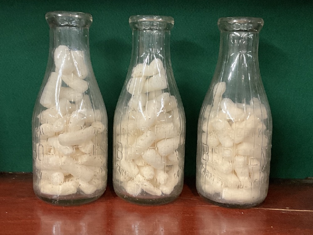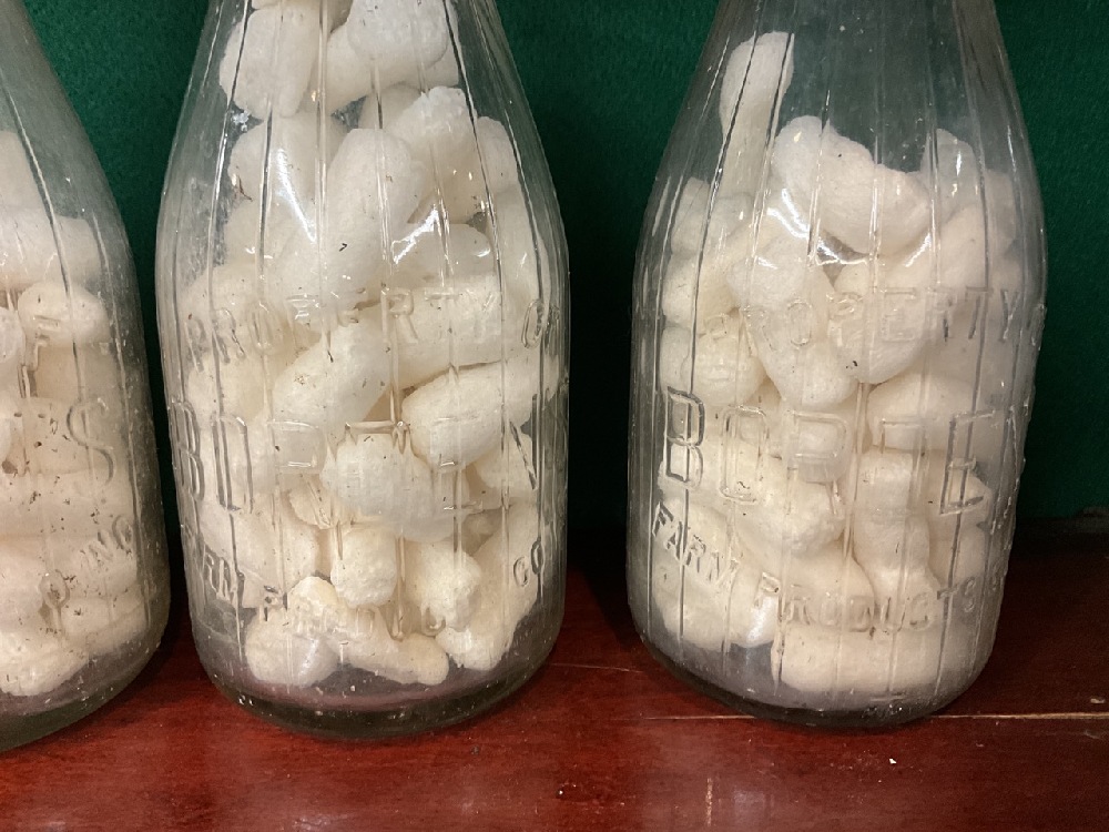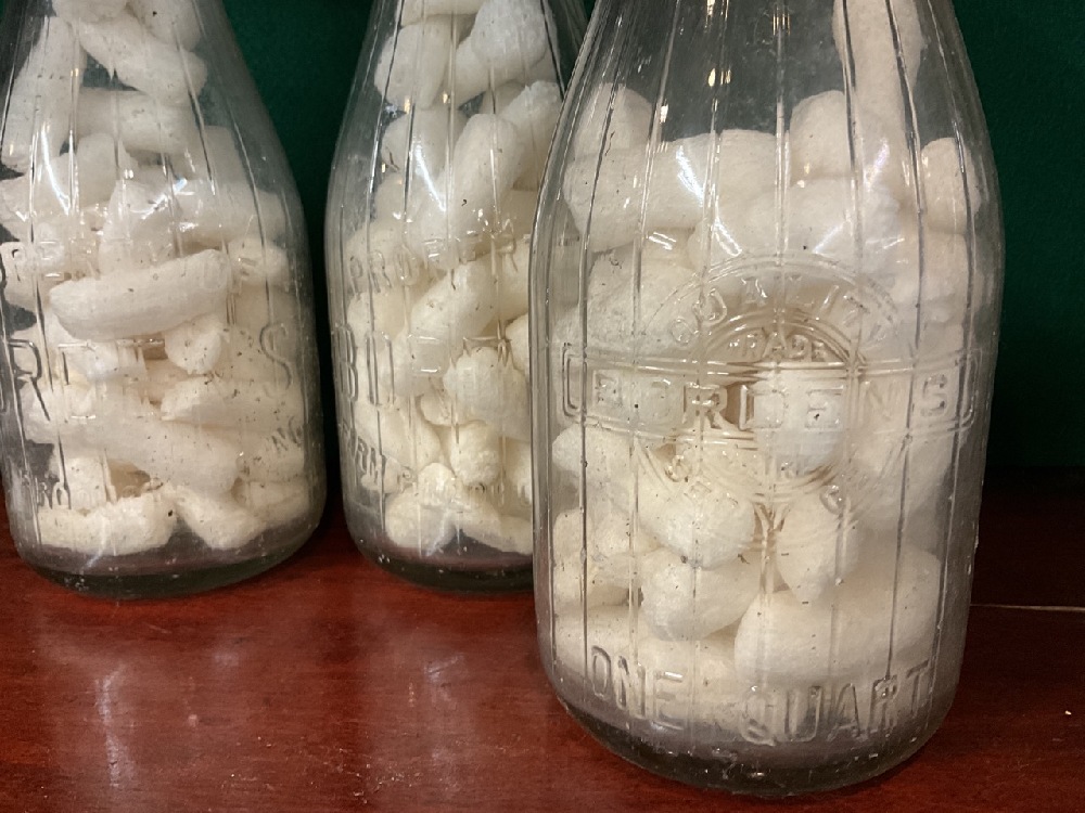 Three vintage Bordon milk bottles.