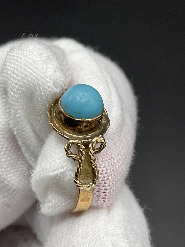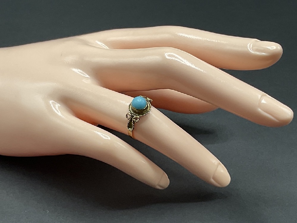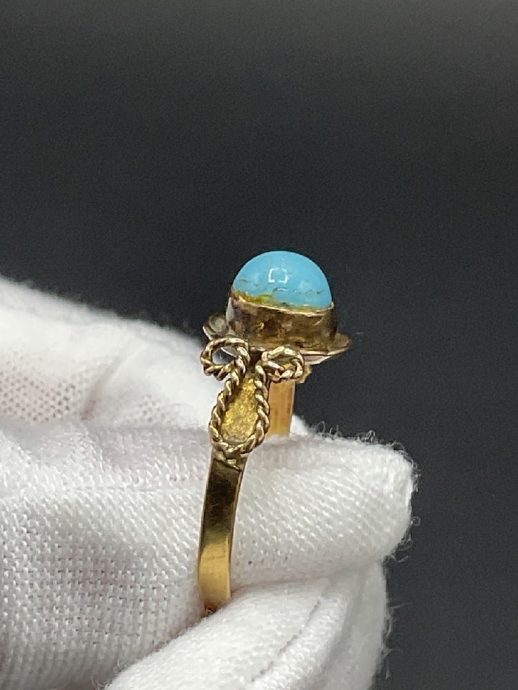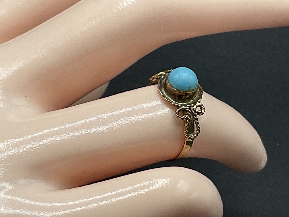 European 9ct. Gold Persian turquoise antique ring. European maker's marks and 300 signed on outside of band.