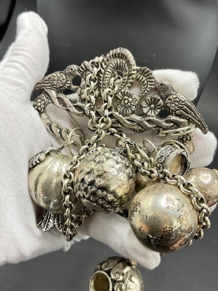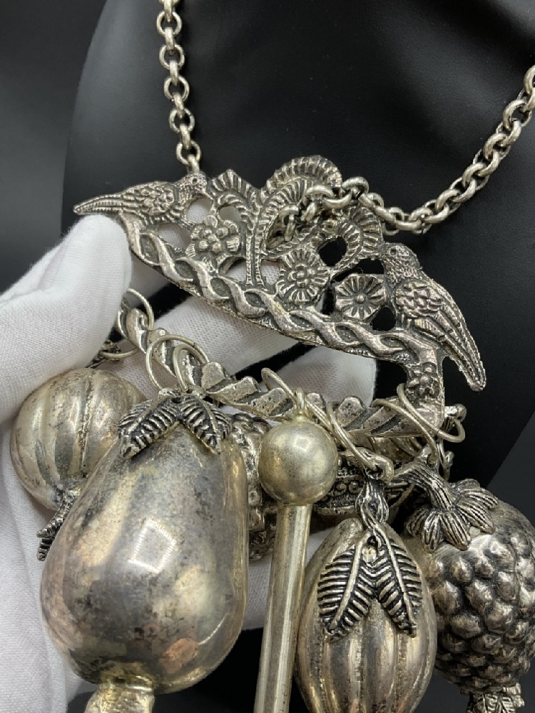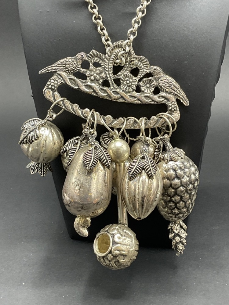 An Afro-Brazlilian Balangandan. Silver plated chain and chatelaine style charms.