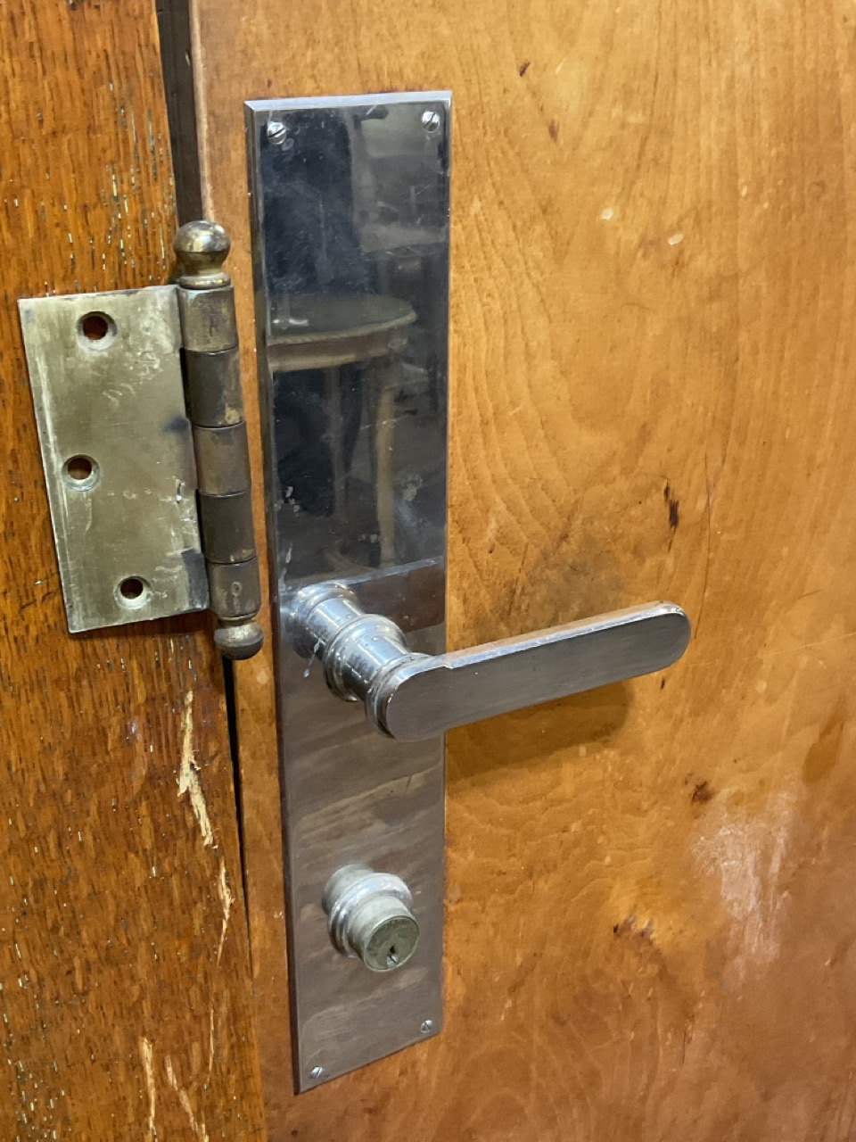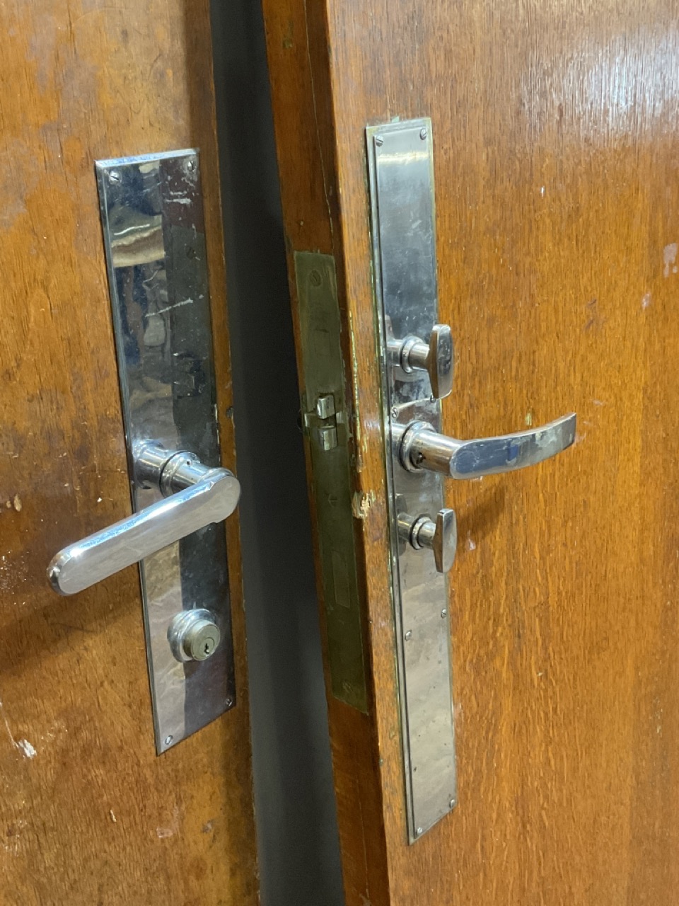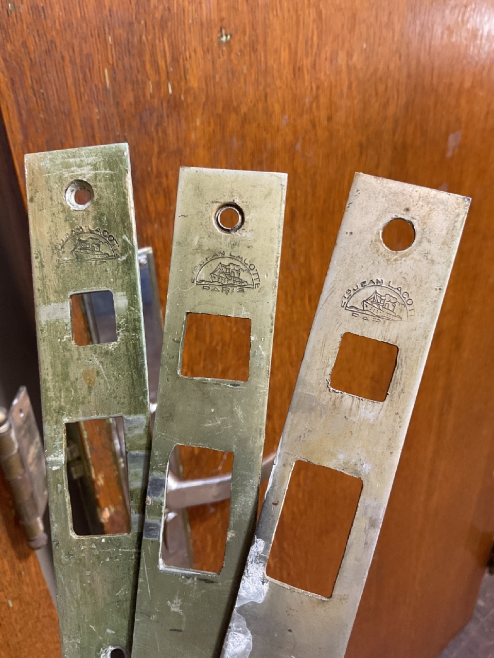 Art Deco chrome handles and hardware. Door plates signed Jean Lacotte, Paris.