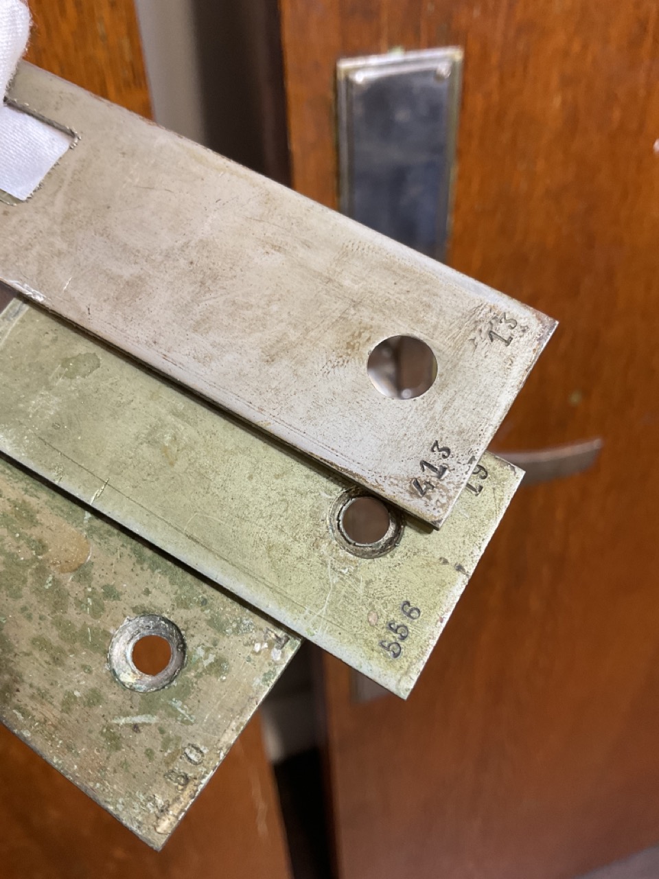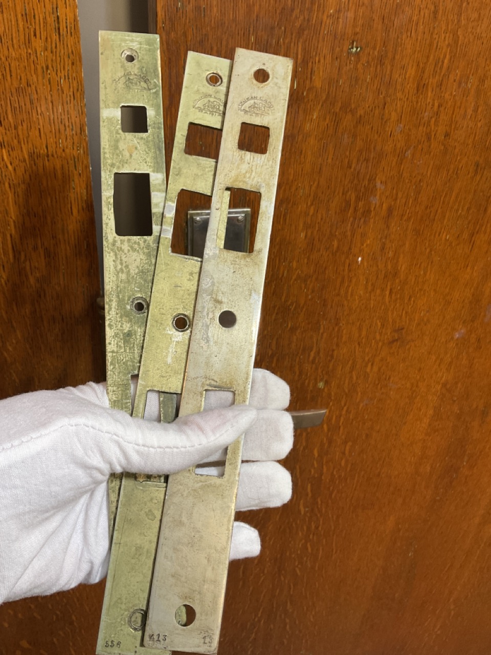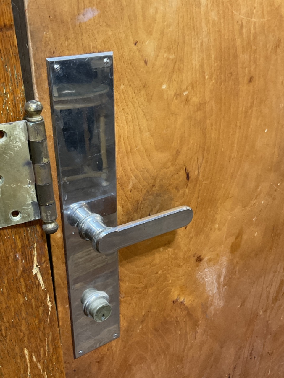 Art Deco chrome handles and hardware. Door plates signed Jean Lacotte, Paris.