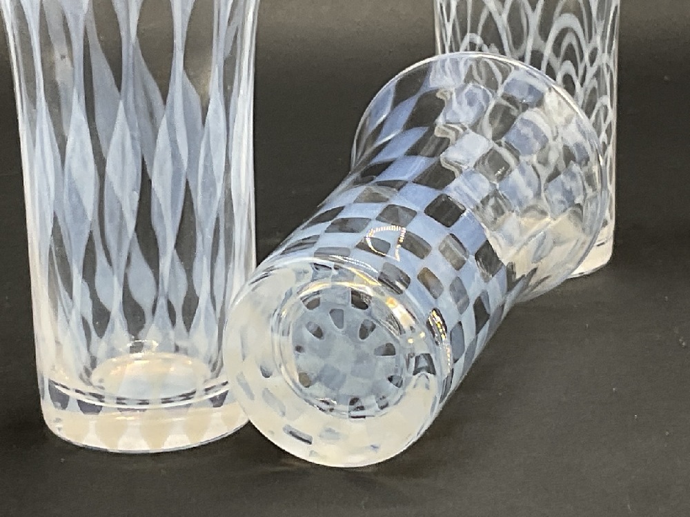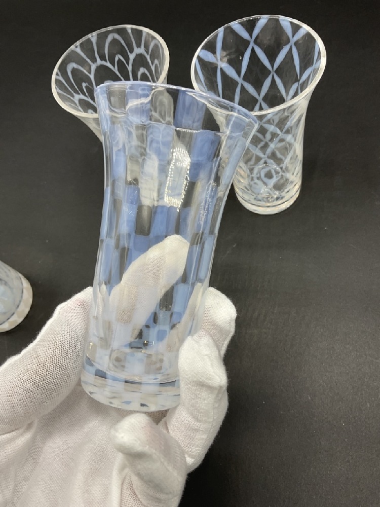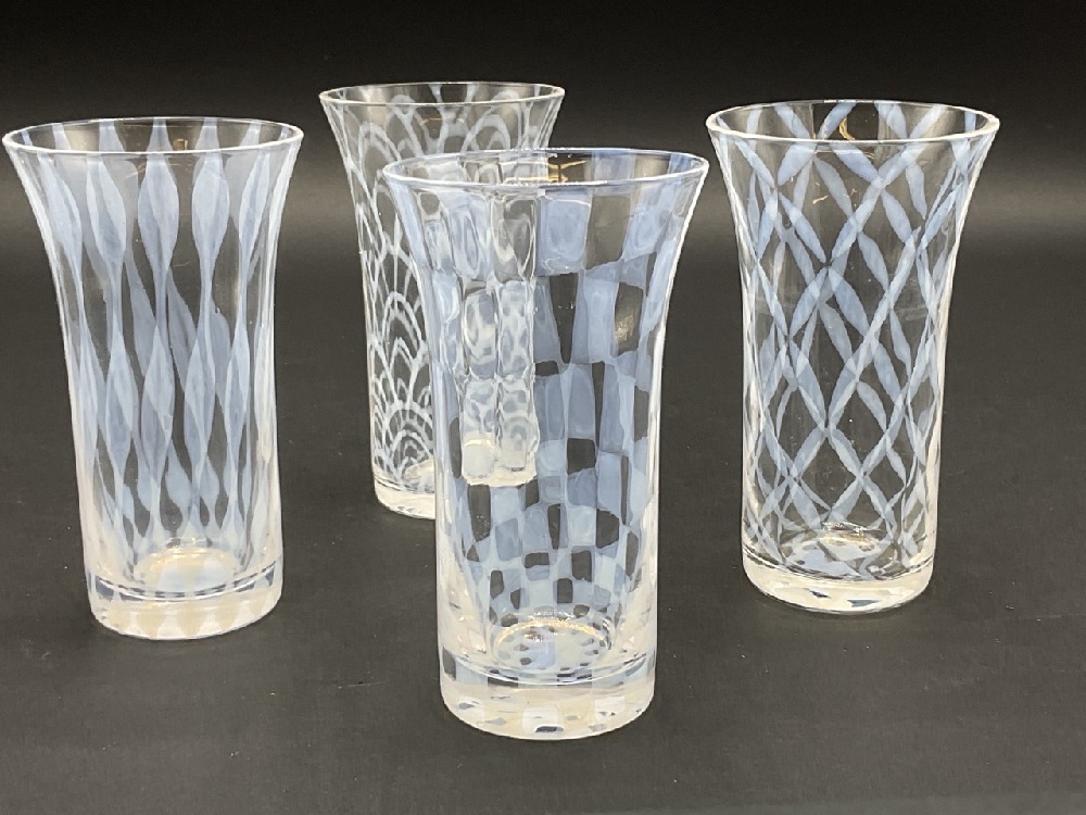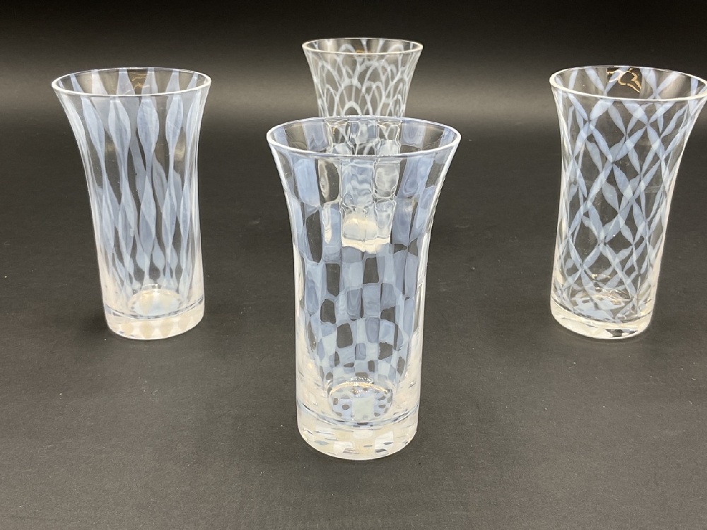 Four Opalescent art glass juice glasses.