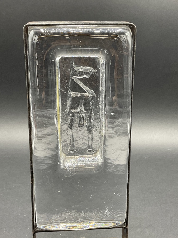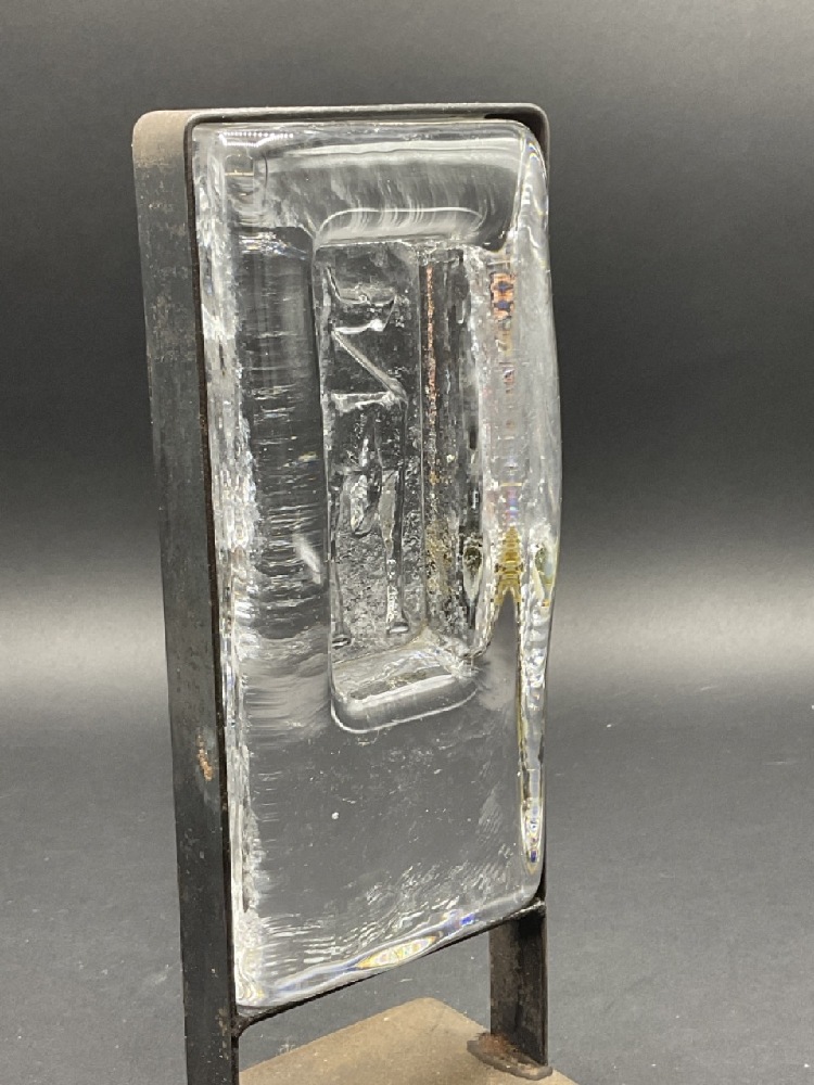 Erik Hoglund for Kosta Boda Sculpture with iron frame. Mid 20th century. Unsigned.
