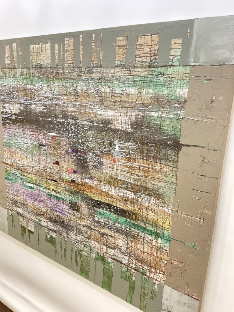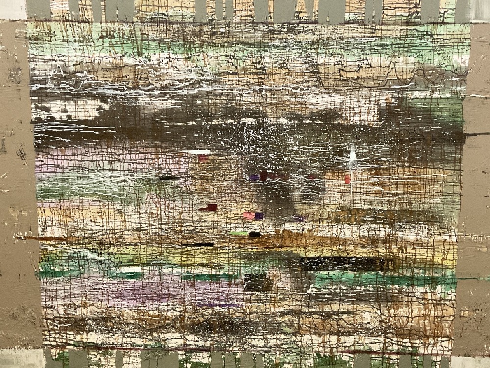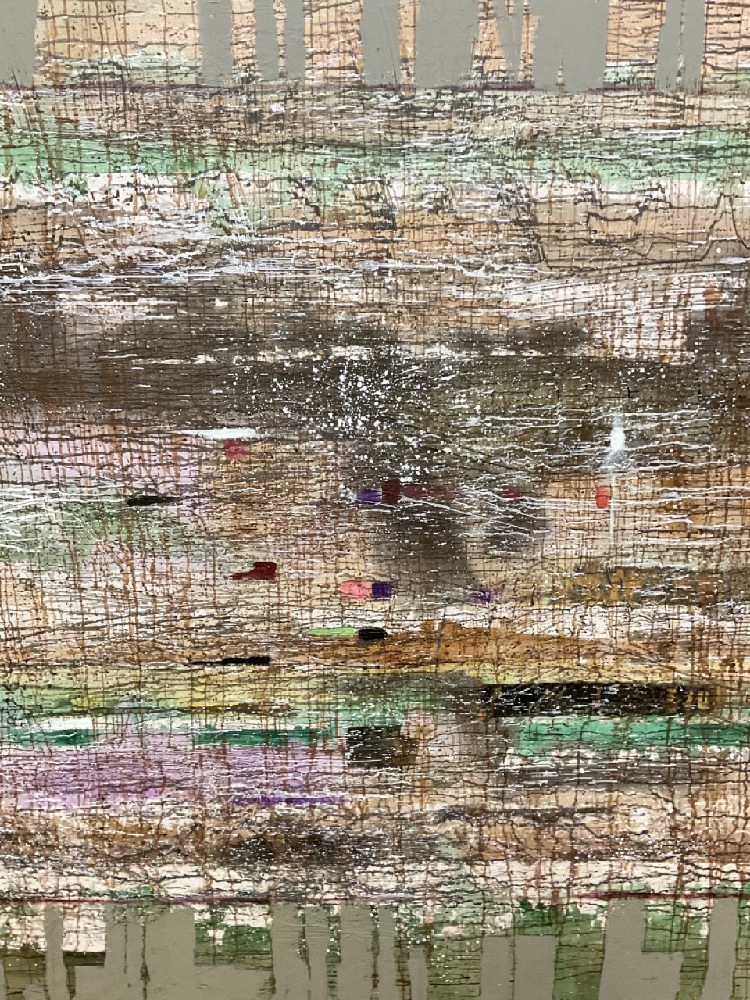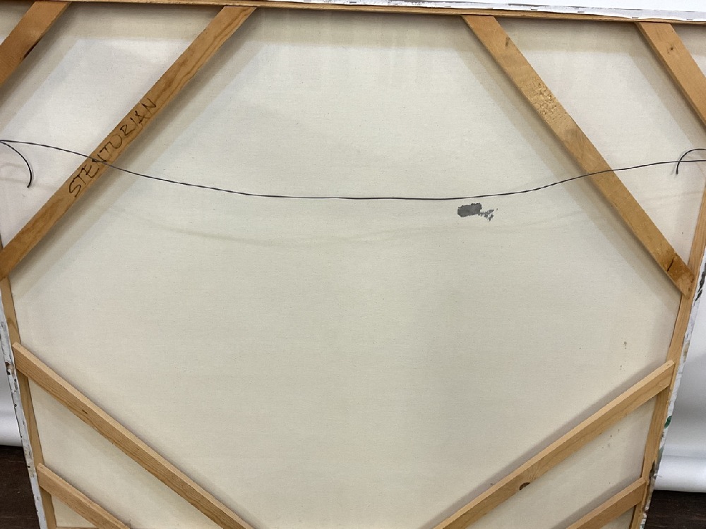 Large mural painting using a large variation of color. Created in the 1990's. Previously housed in entry way of contemporary home.