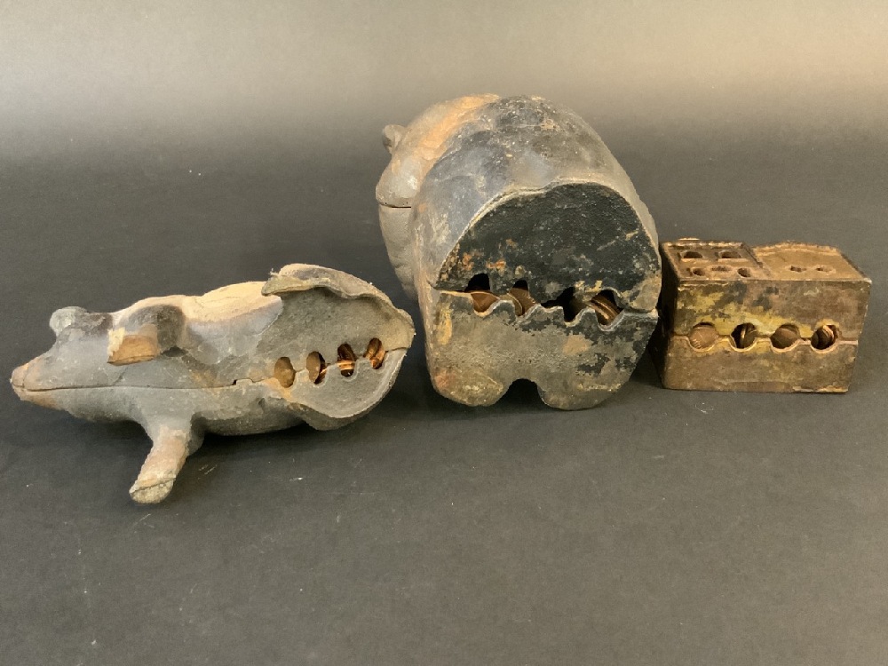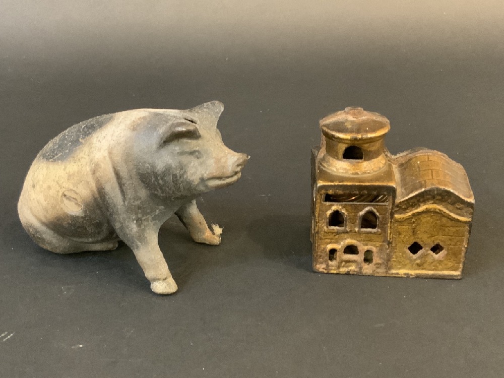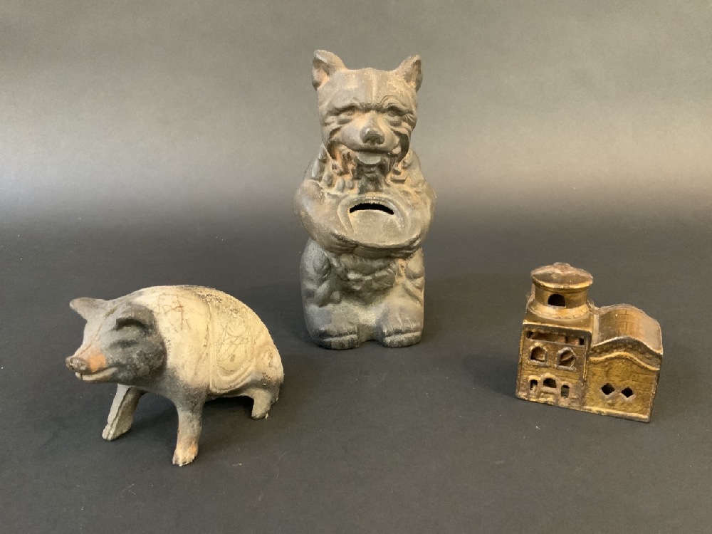 Cast Iron Still Banks: Bear, Pig, Church
