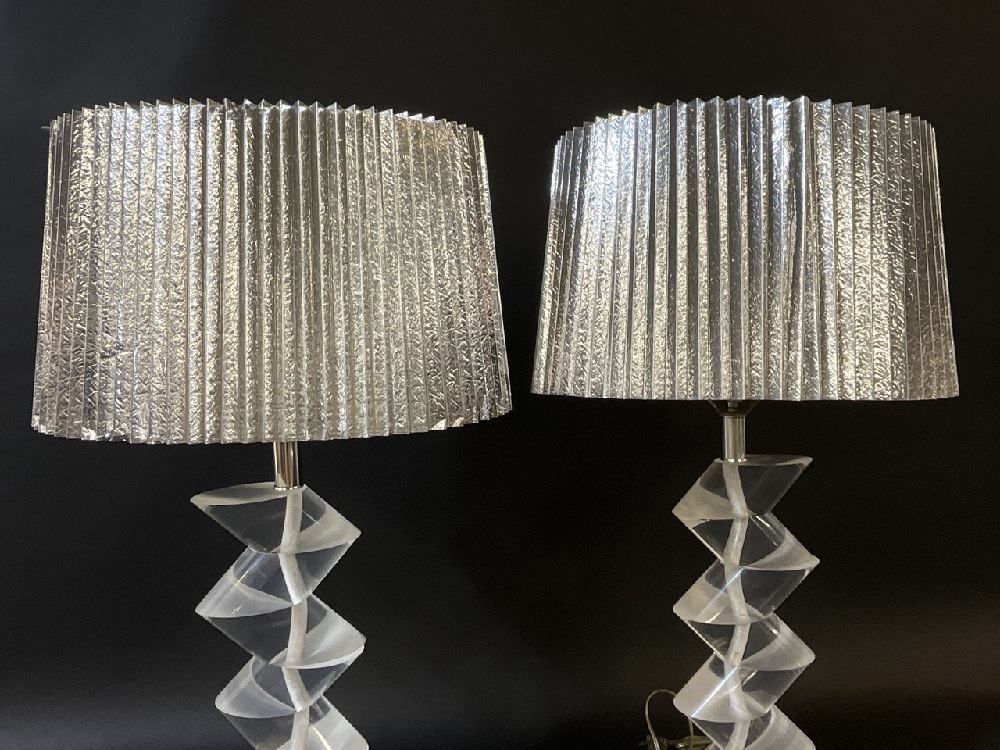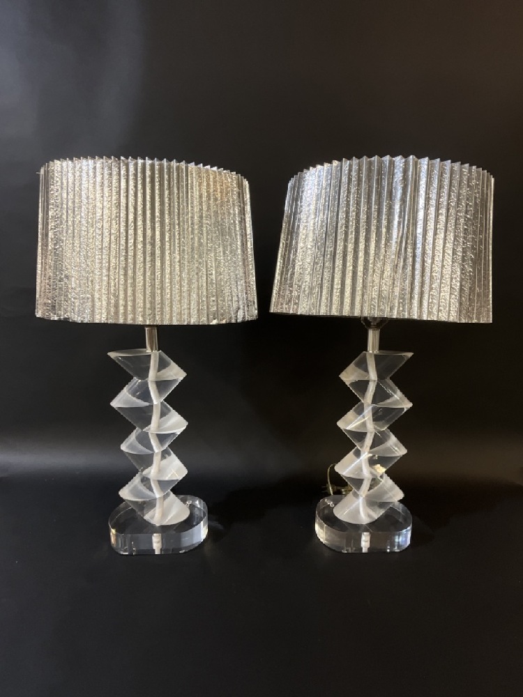 Pair of Twisted Stacked Lucite MCM Table Lamps