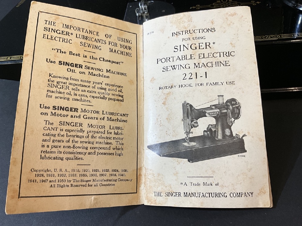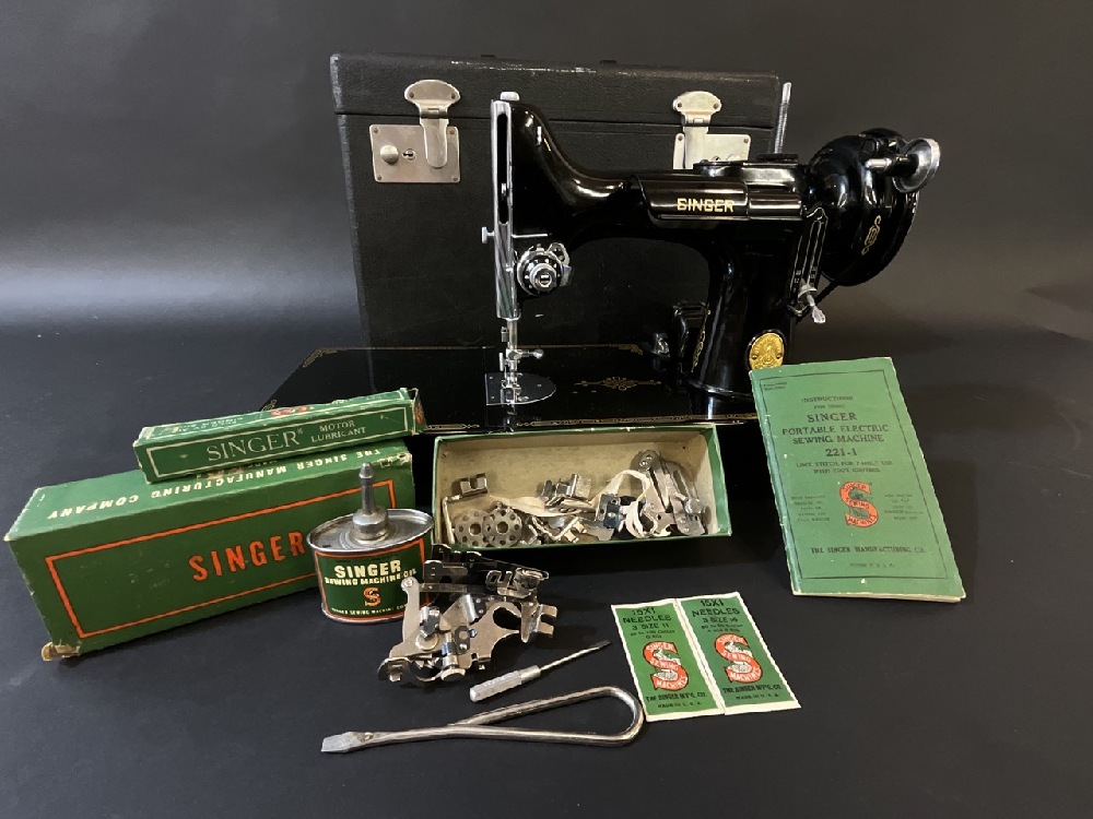 Singer Sewing Machine 221-1with Foot Pedal and Accessories