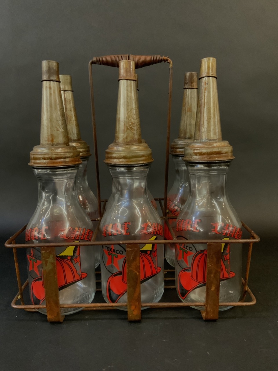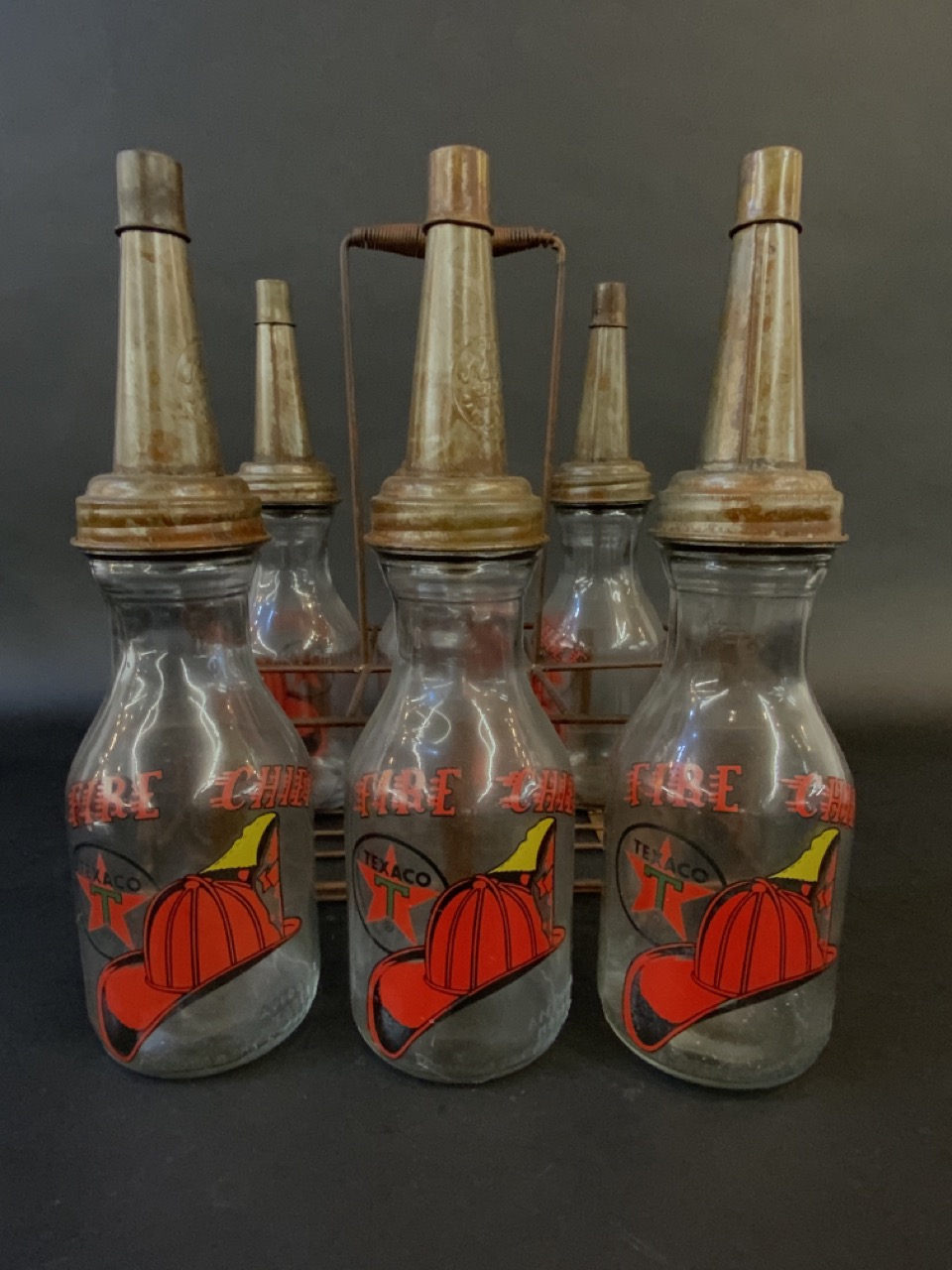 Texaco Fire Chief Oil Bottles in Carrier