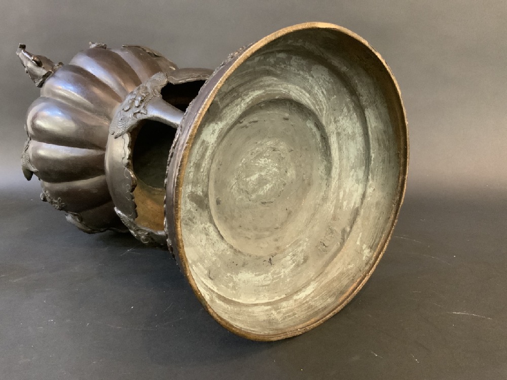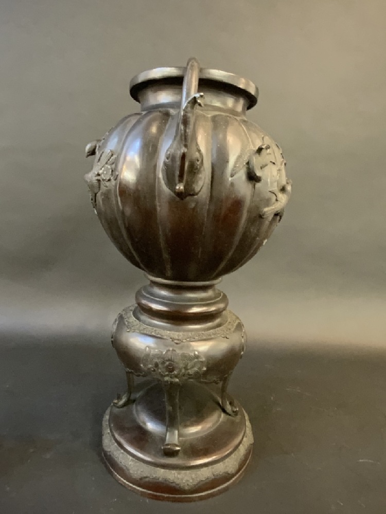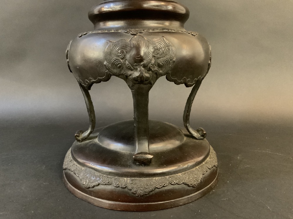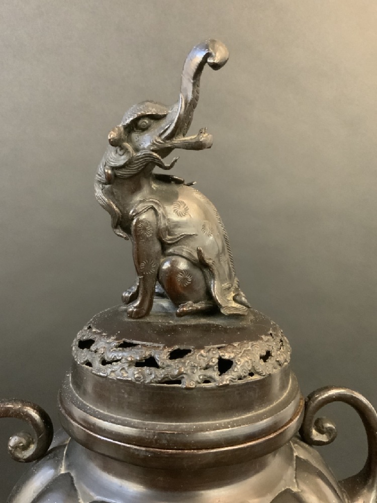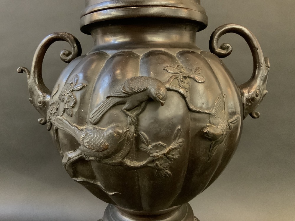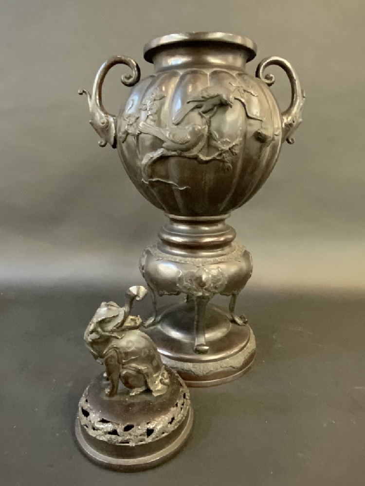Meiji Period Japanese Bronze Elephant With Birds Lidded Double Handle Urn