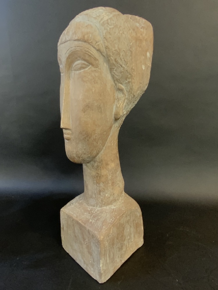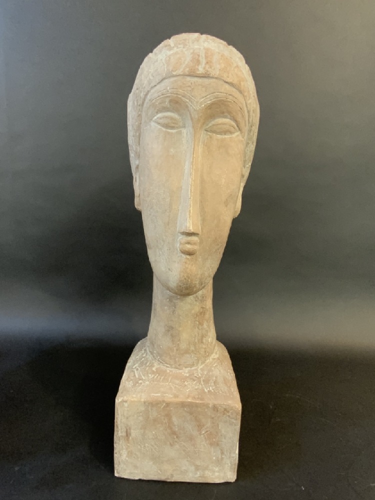 Tête-à-tête De Femme After Modigliani Sculpture Signed Austin 1987