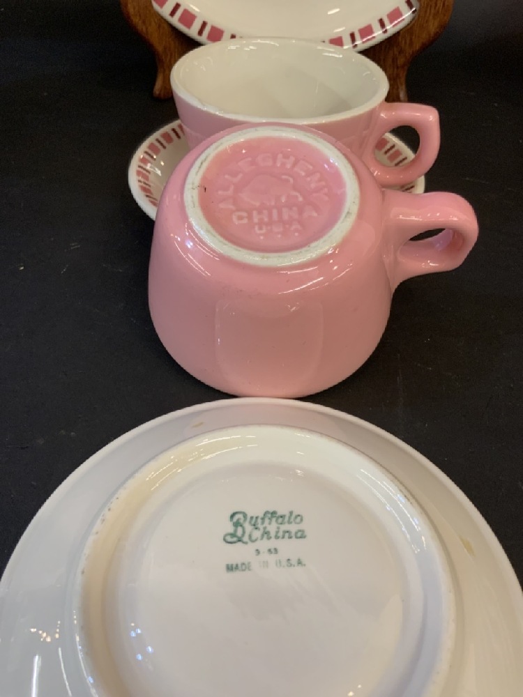 Buffalo China Pink/ Maroon Geometric Service for Eight (8)