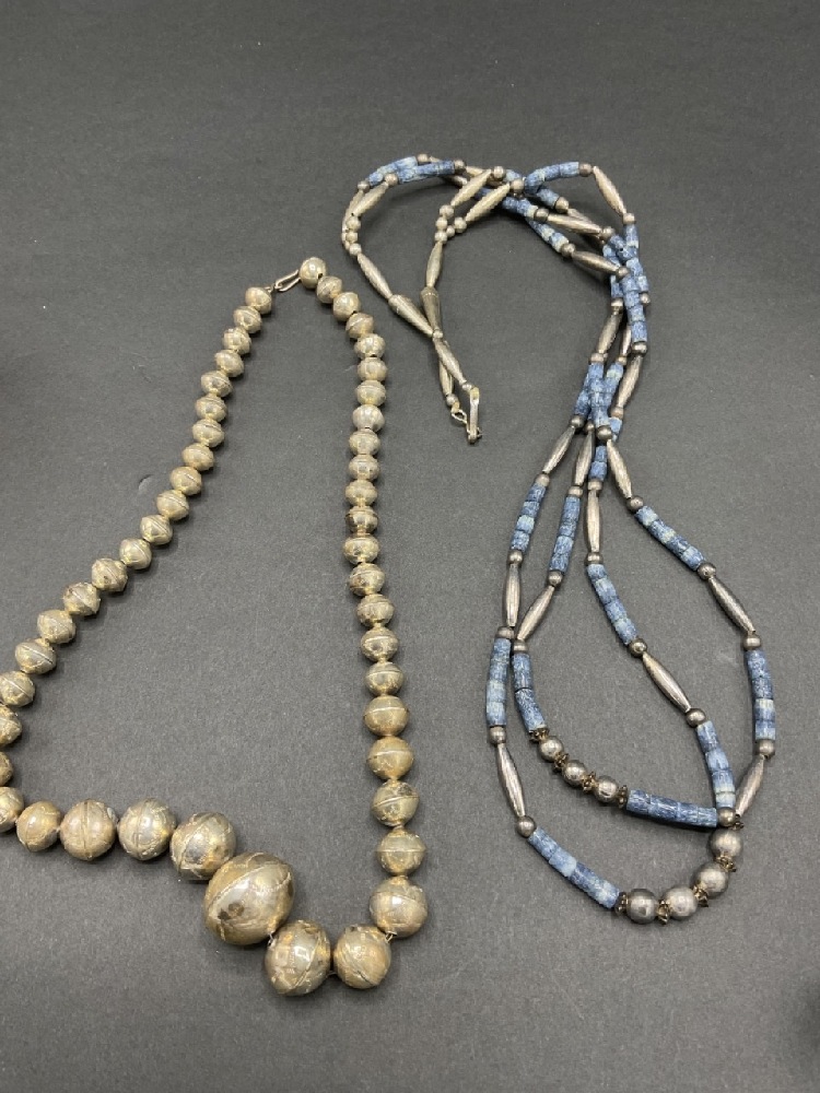 Two (2)Vintage American Navajo Indian Silver Necklaces