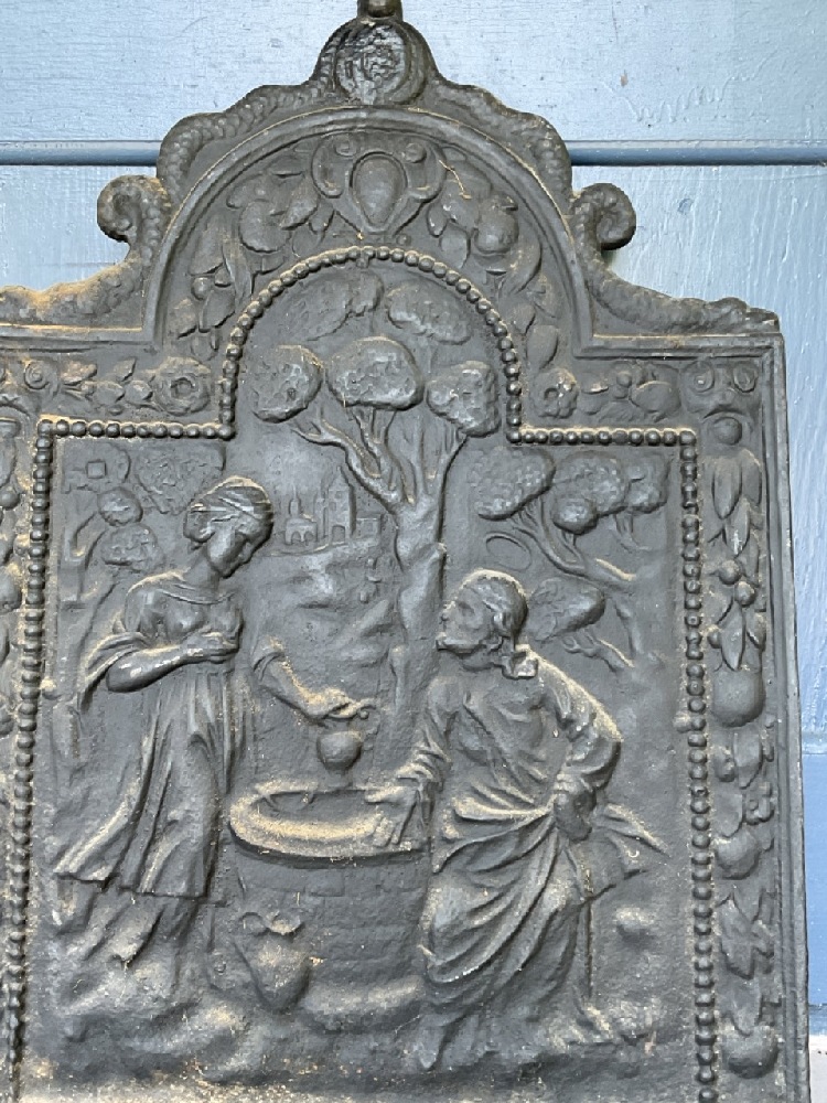 19th century antique cast iron fireplace insert. "Rebecca at the well"