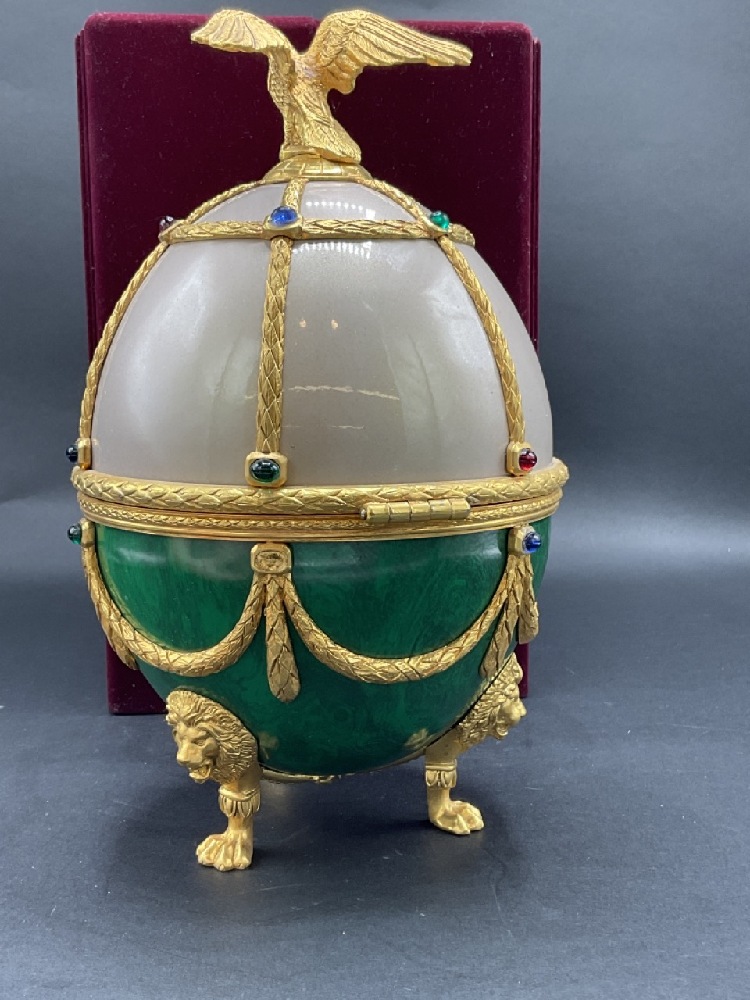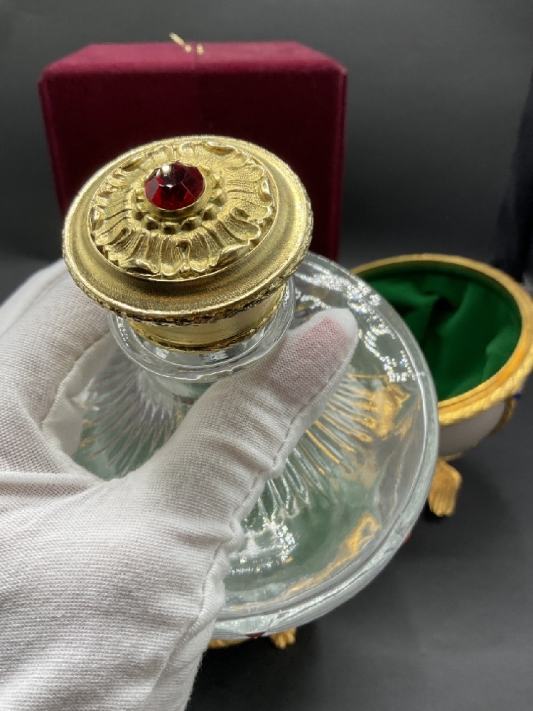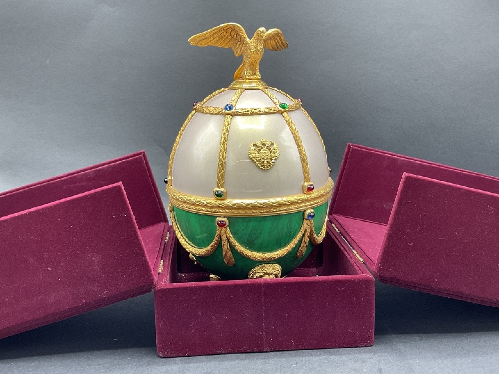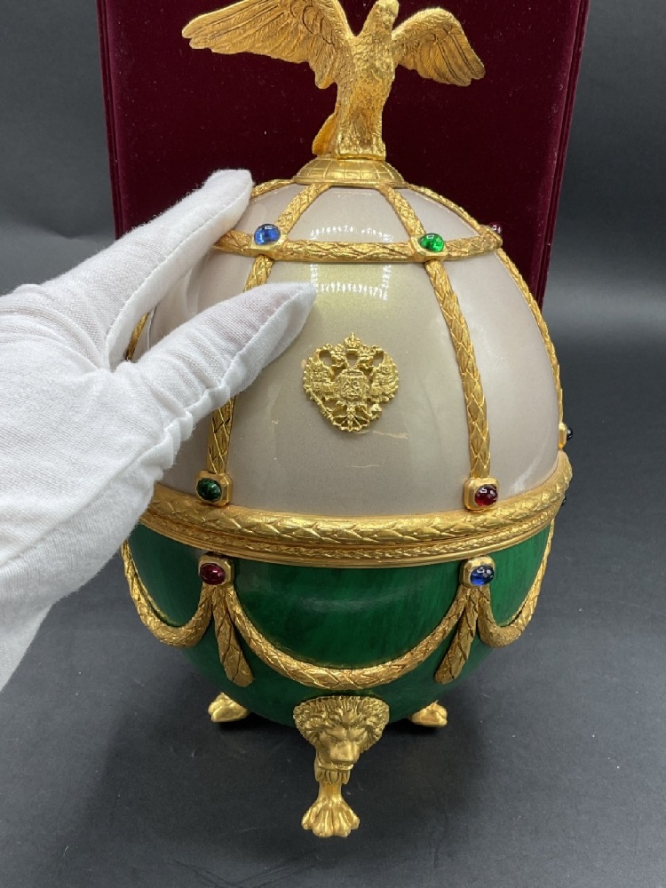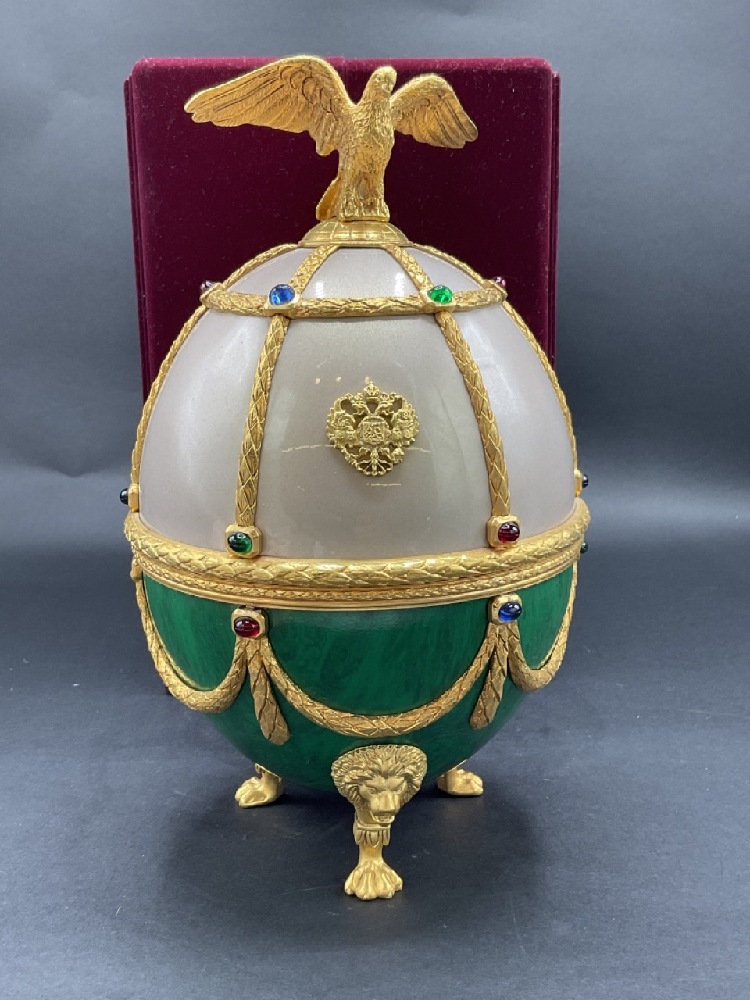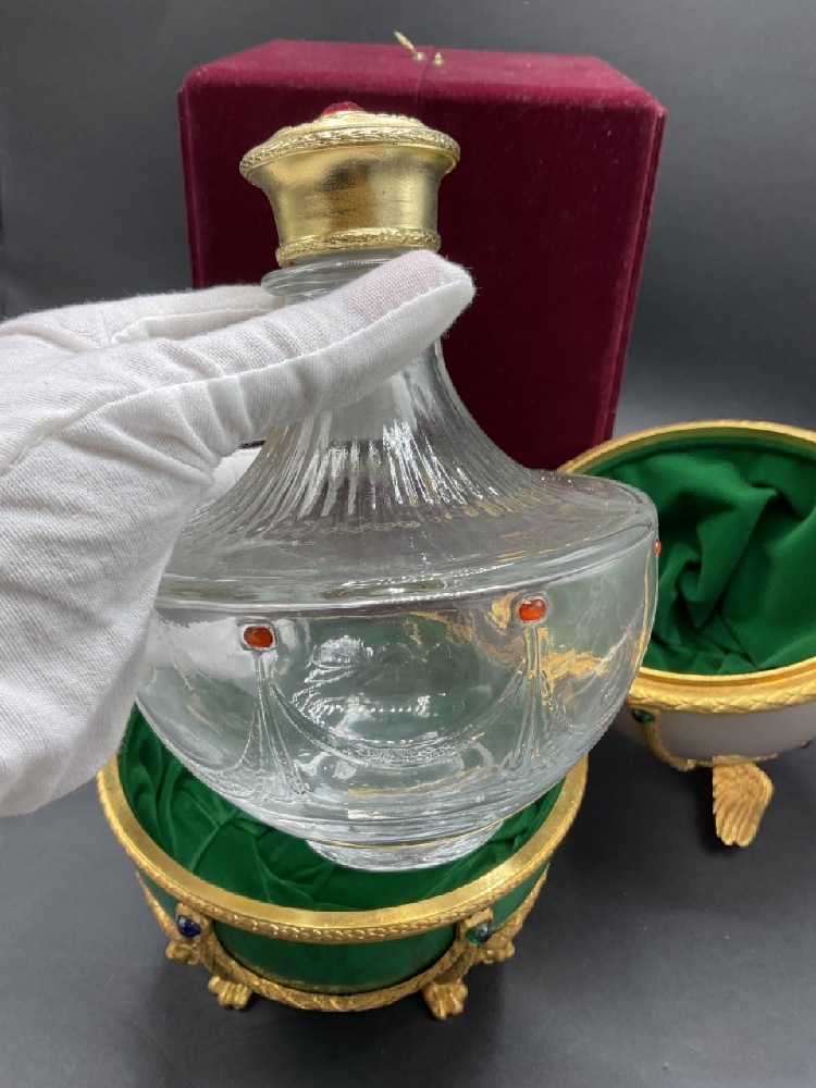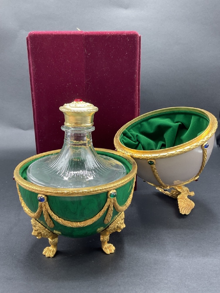Vintage Russian Faberge style Imperial egg liquor decanter. c. 1980's with cerfificate.