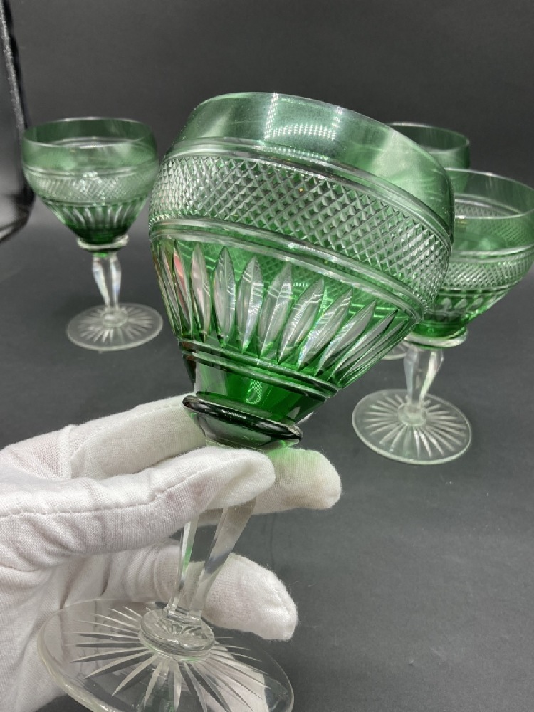 Green and Clear Cut Cystal Stemware