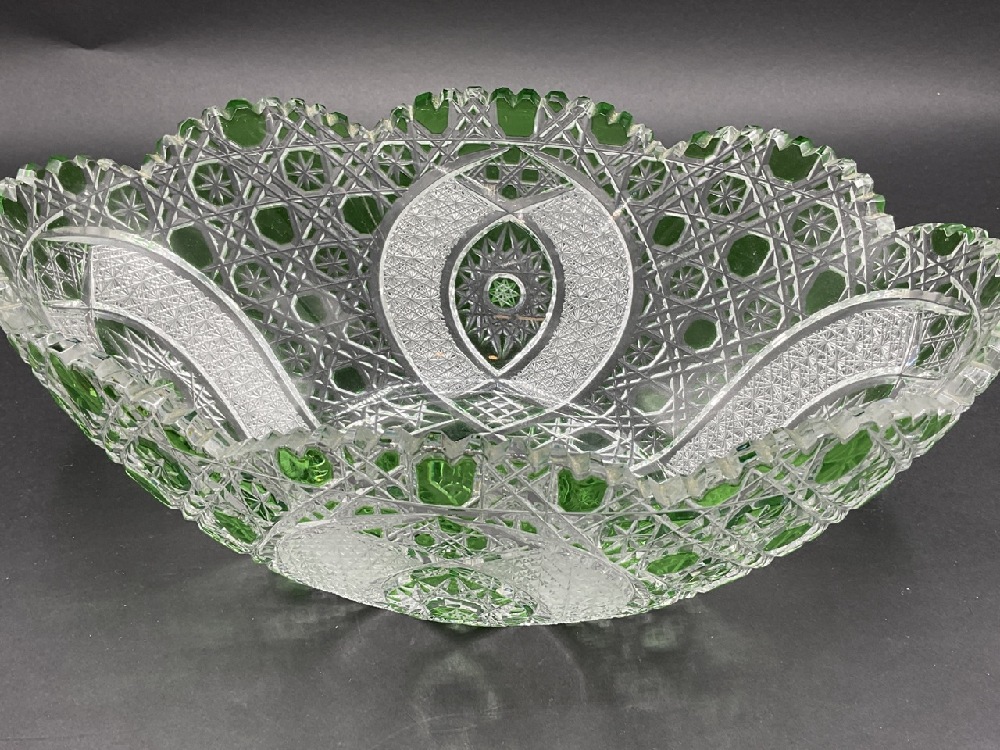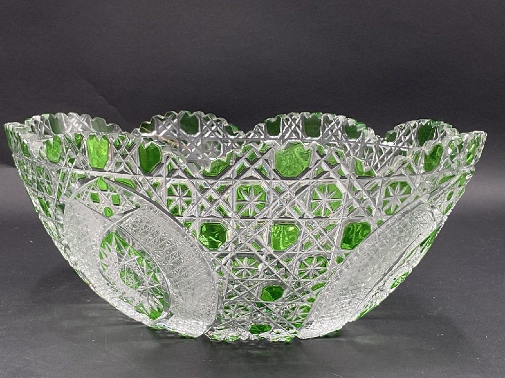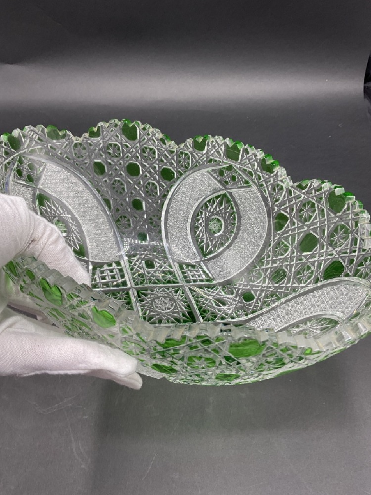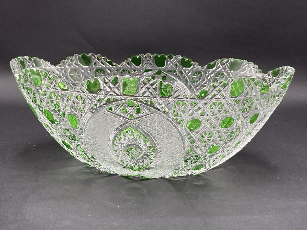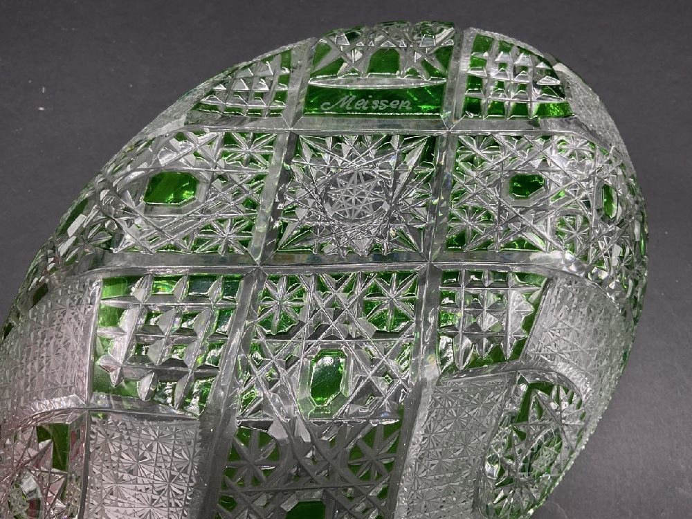 Signed Meissen Green Cut to Clear Signed Cut Crystal Glass Bowl.