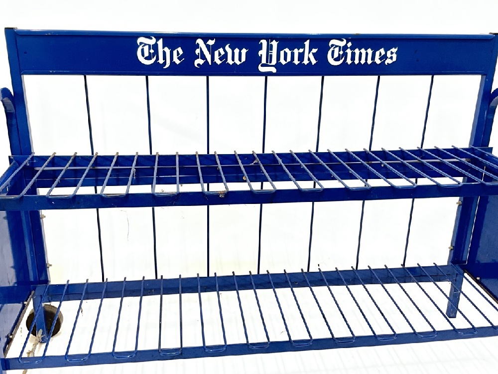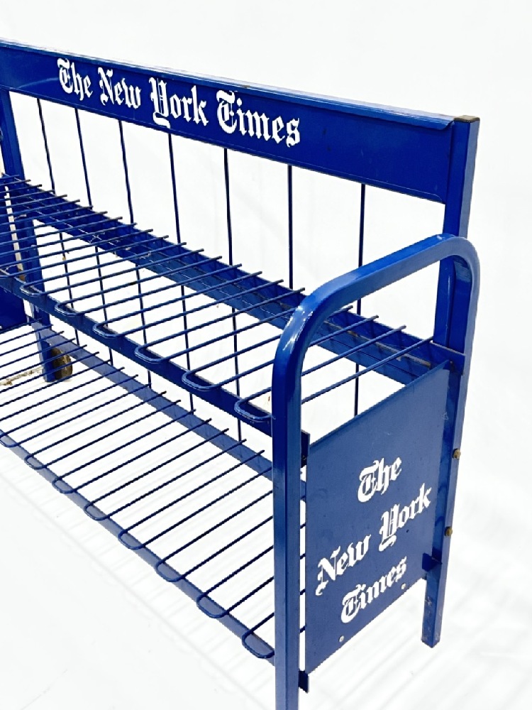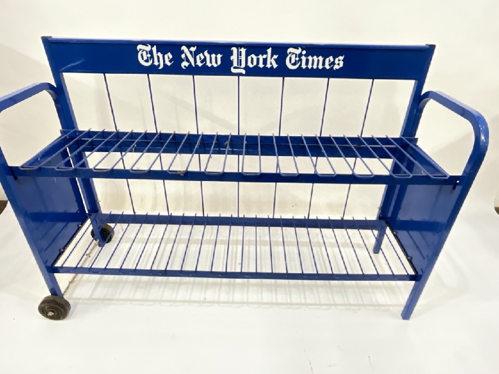 NY Times Advertising Metal Newspaper Stand Rack. Works well as shoe rack or entry piece.