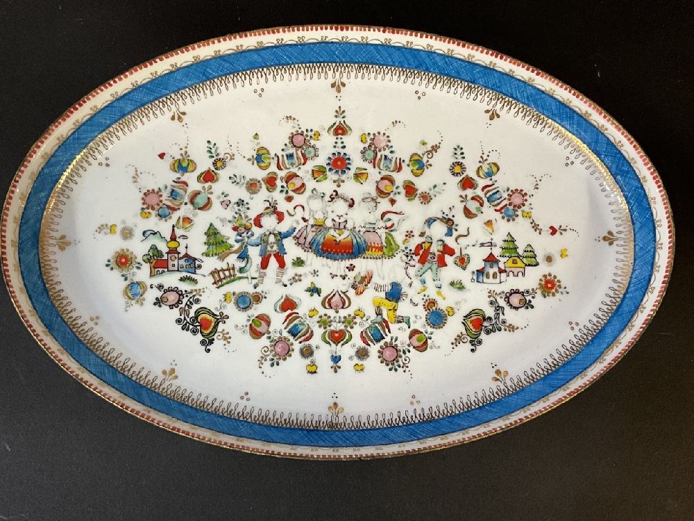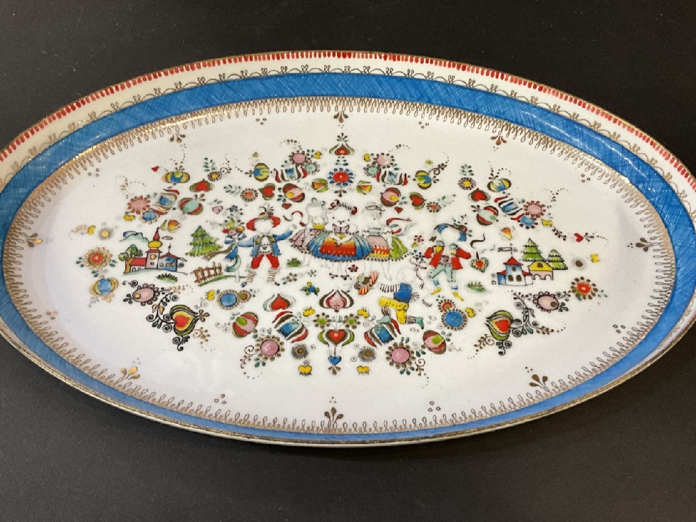 Austrian Enameled Metal Serving Dish. Signed Arta