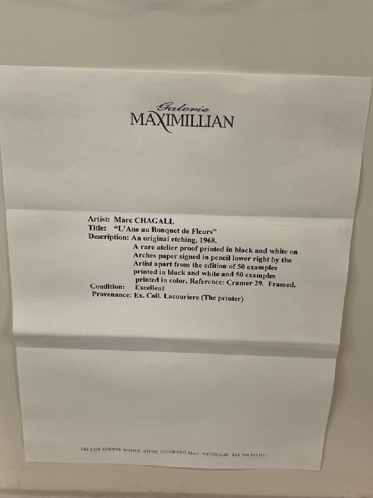 Marc Chagall L'Ane au Bouquet d Fleurs c. 1968 Edition of 50.