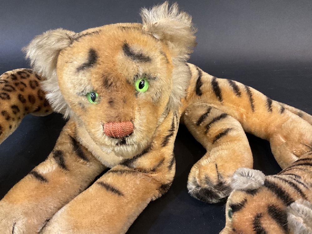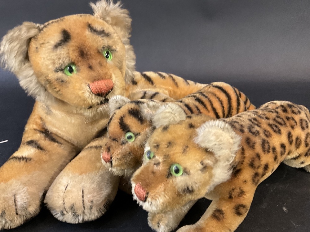 Three (3) Vintage Steiff Tigers . Mother and cubs.
