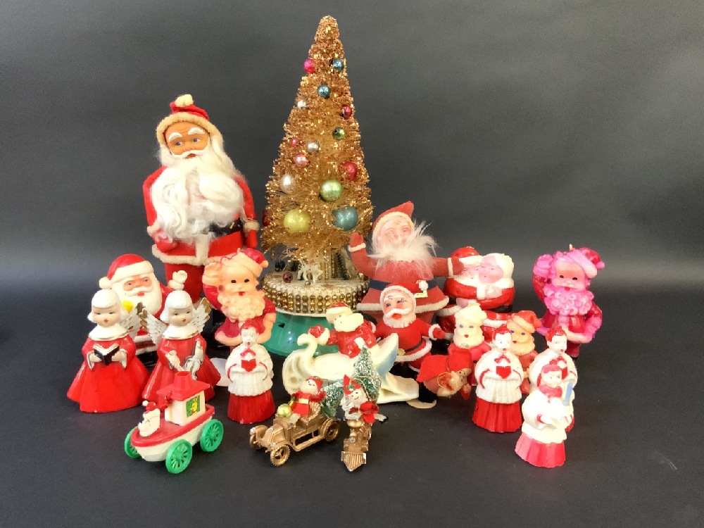 Vintage Santa Lot with Vintage Christmas Tree, Candles, and Figurines
