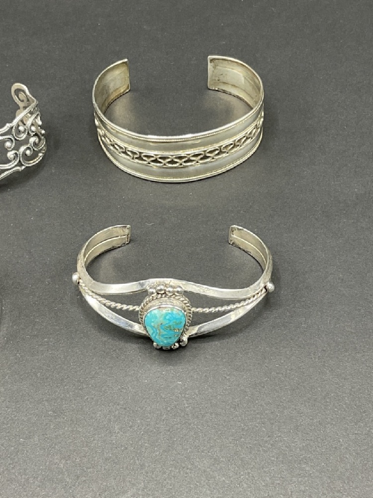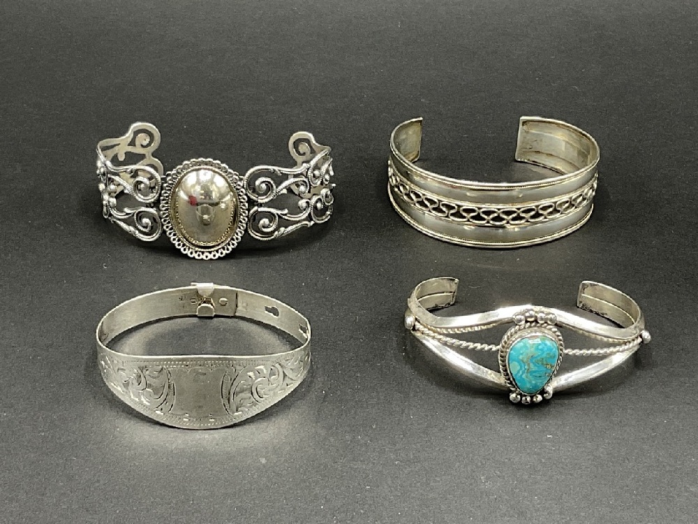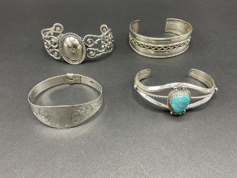 Four (4) Sterling silver cuff bracelets.