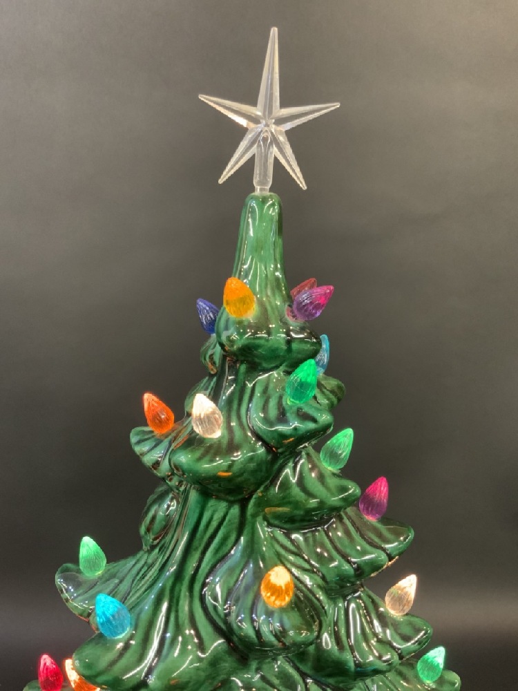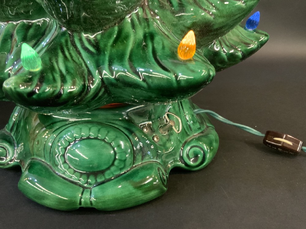 Vintage Ceramic Musical Christmas Tree with Santa Wall Hat.