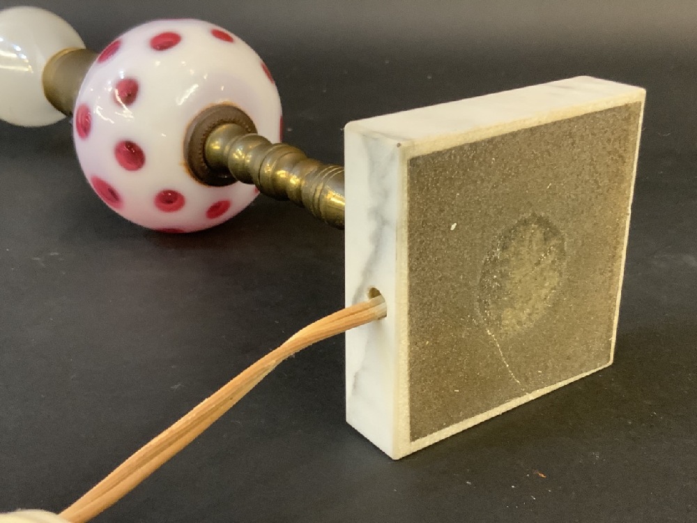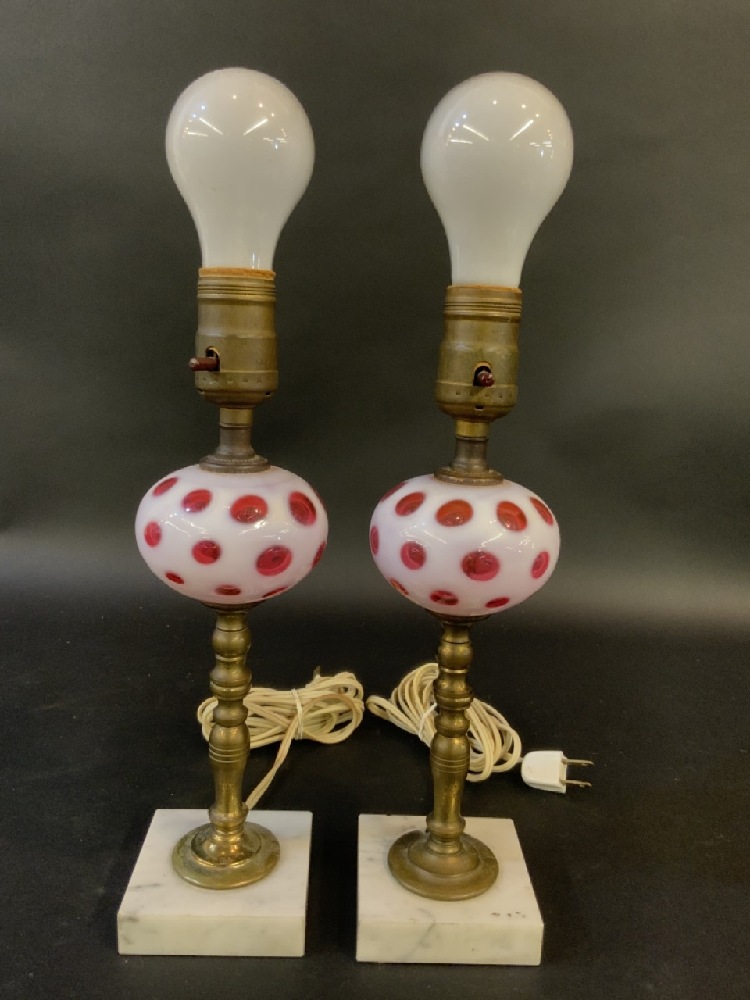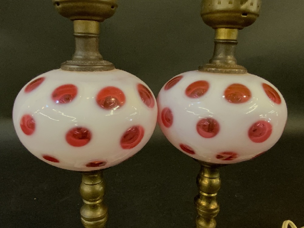A pair, Cranberry Coin Spot Boudoir Lamps