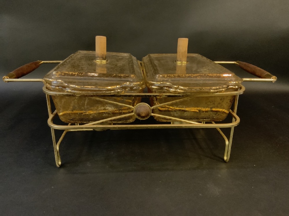Vintage Fire King 1 Qt Casserole Dish with Lids in Cradle Stand