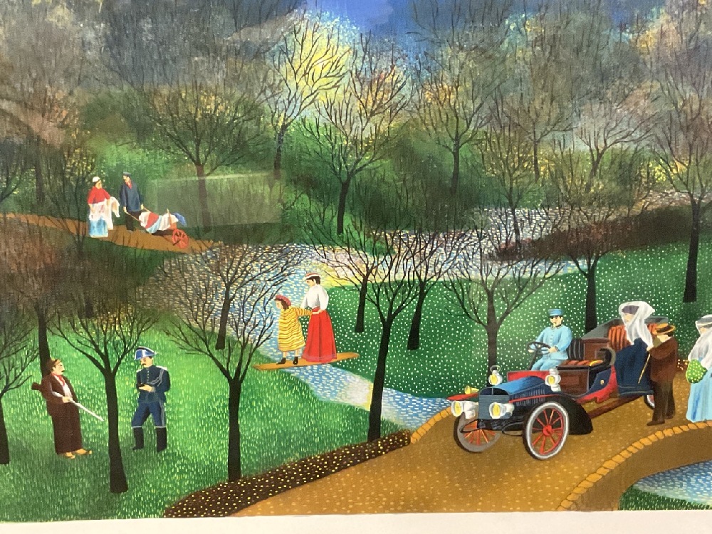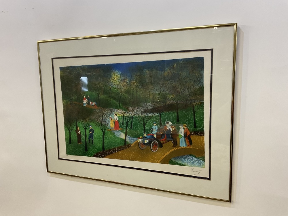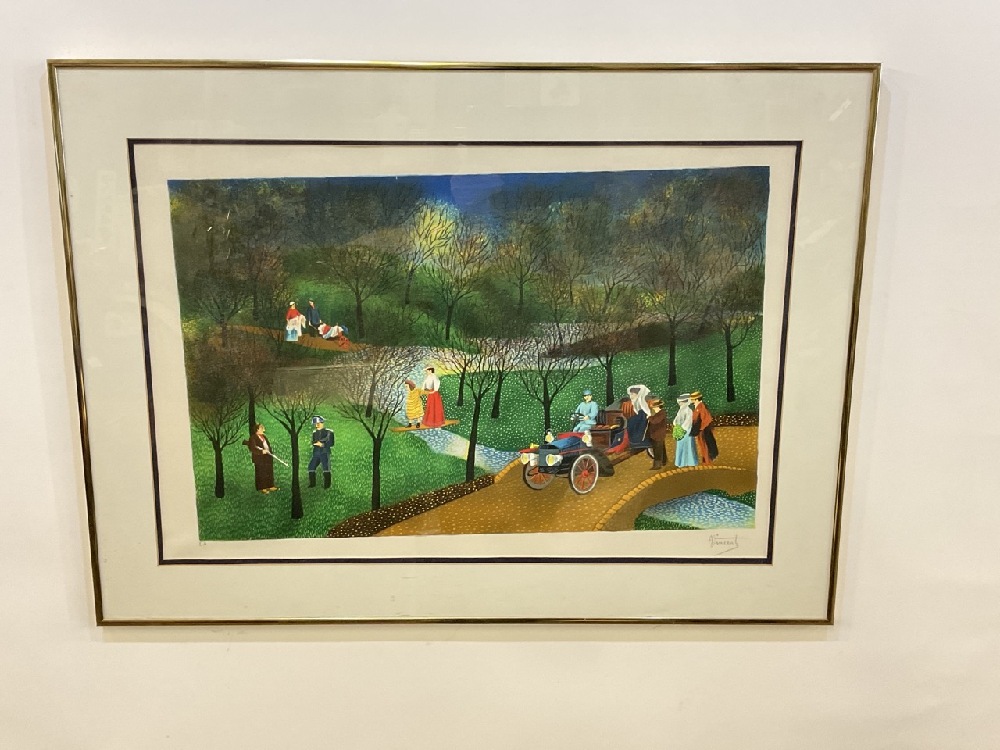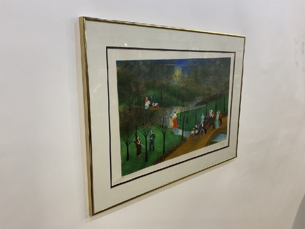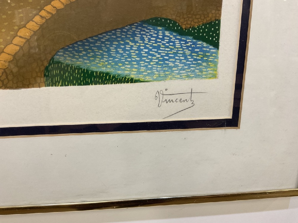 Folk Art Lithograph Print, Pencil Signed Vincente and E.A.