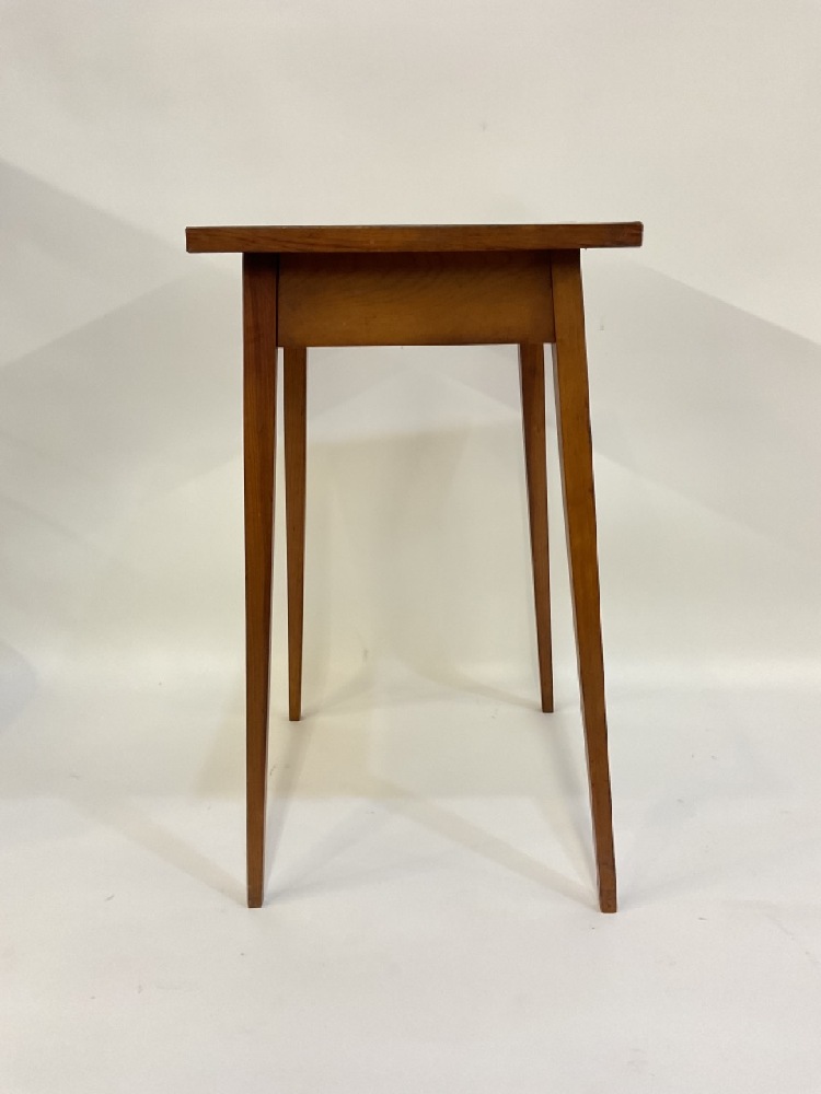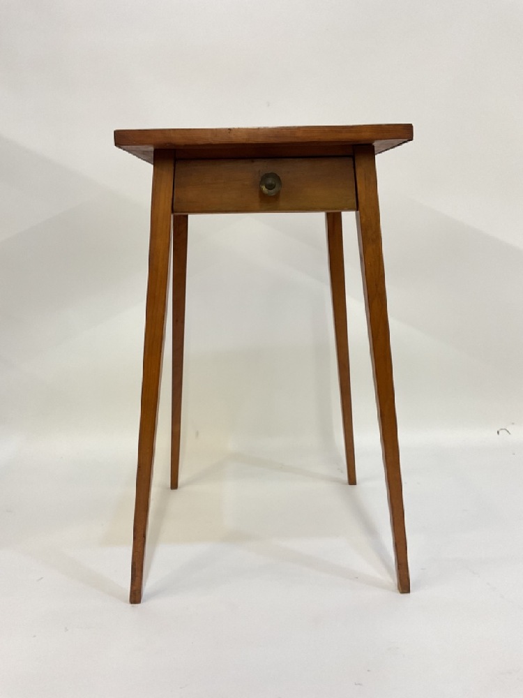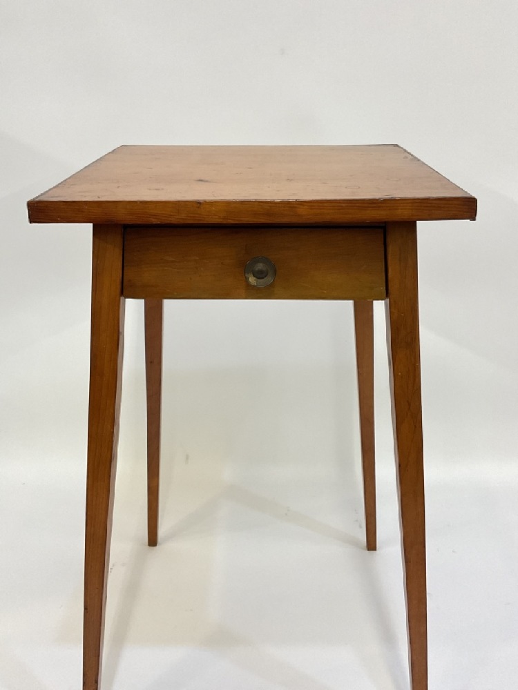19th c. Primitive Pencil Leg Pine One Drawer Table.