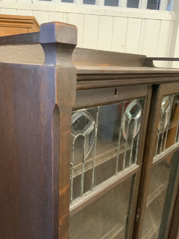 Arts & Crafts Two Door Bookcase with Lead Glass Panels.