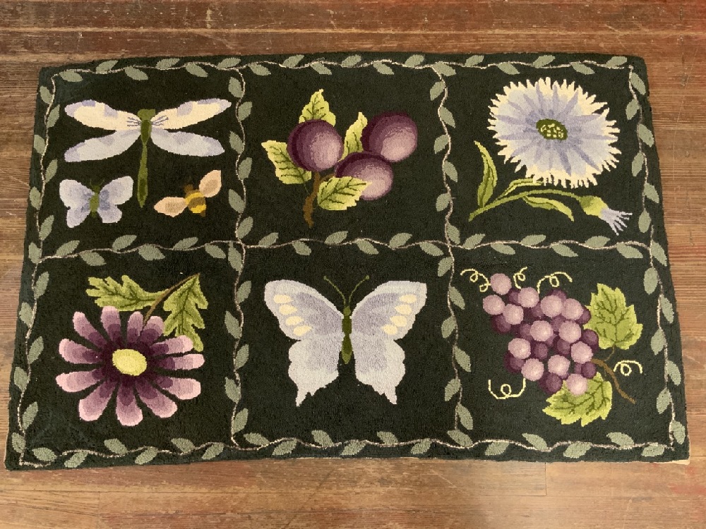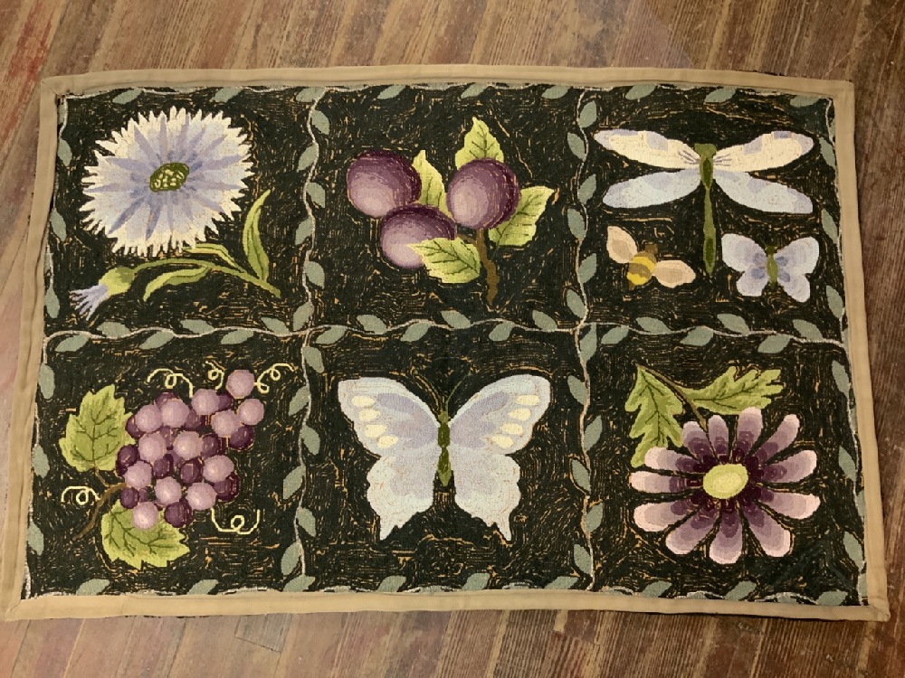 Butterfly, Dragonfly, and Flowers Hook Rug