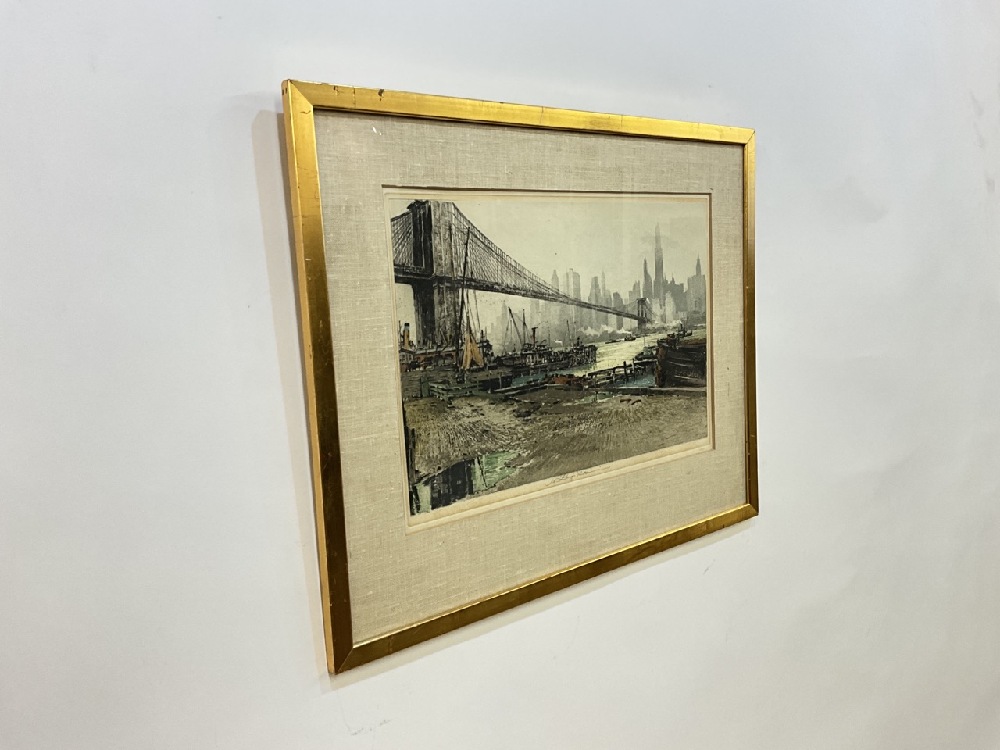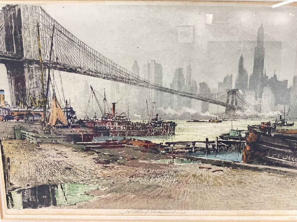 Signed Luigi Kashmir Colored Aquatint Etching - Brooklyn Bridge
