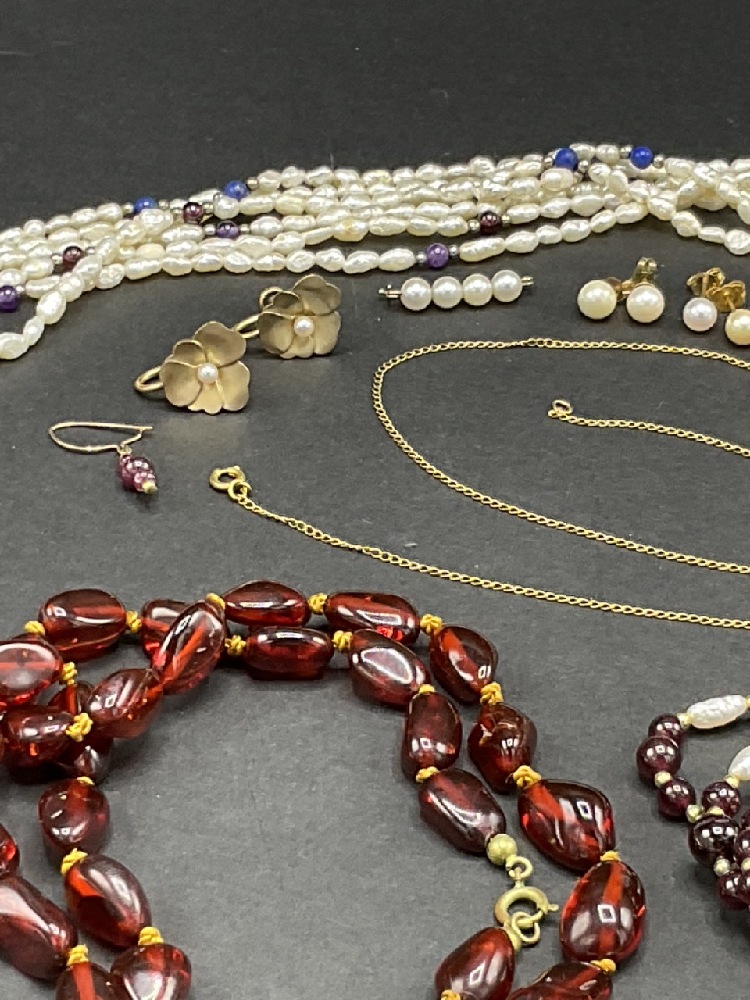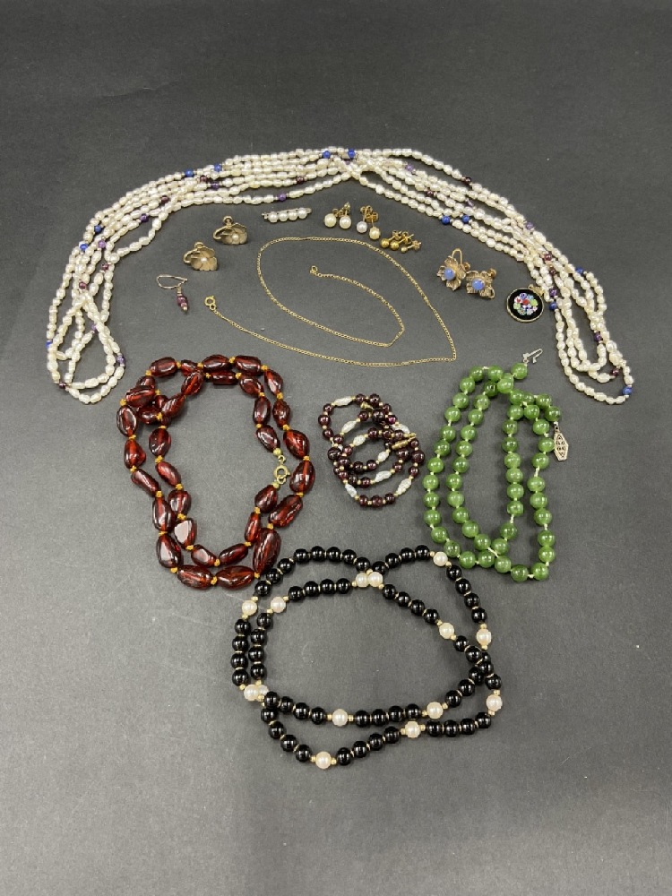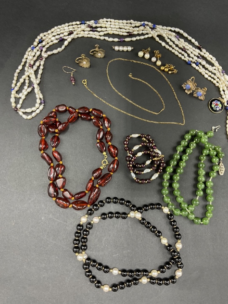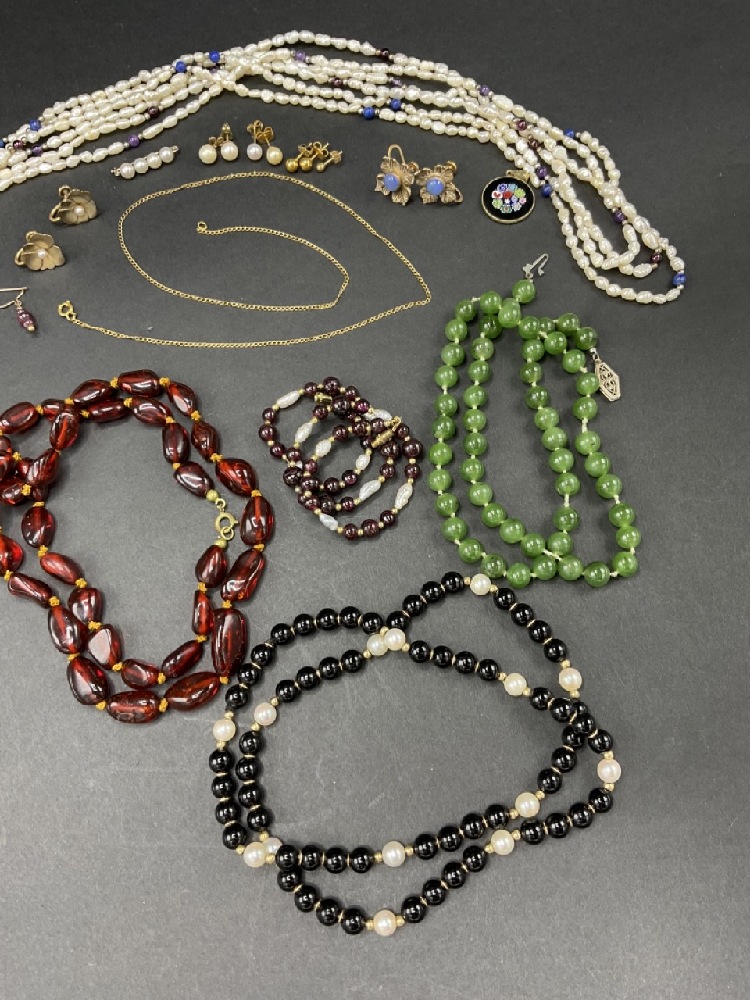 Estate Compiled Jewelry Lot. Freshwater pearls, gold, jade etc.
