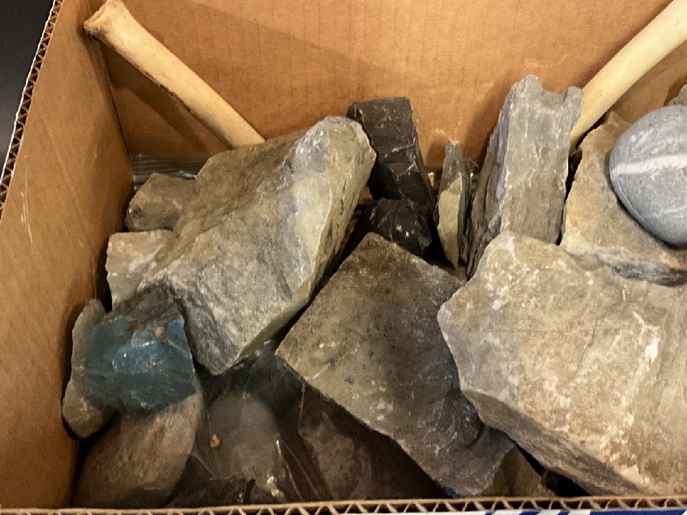 Box of Fossils & Decorative Rocks