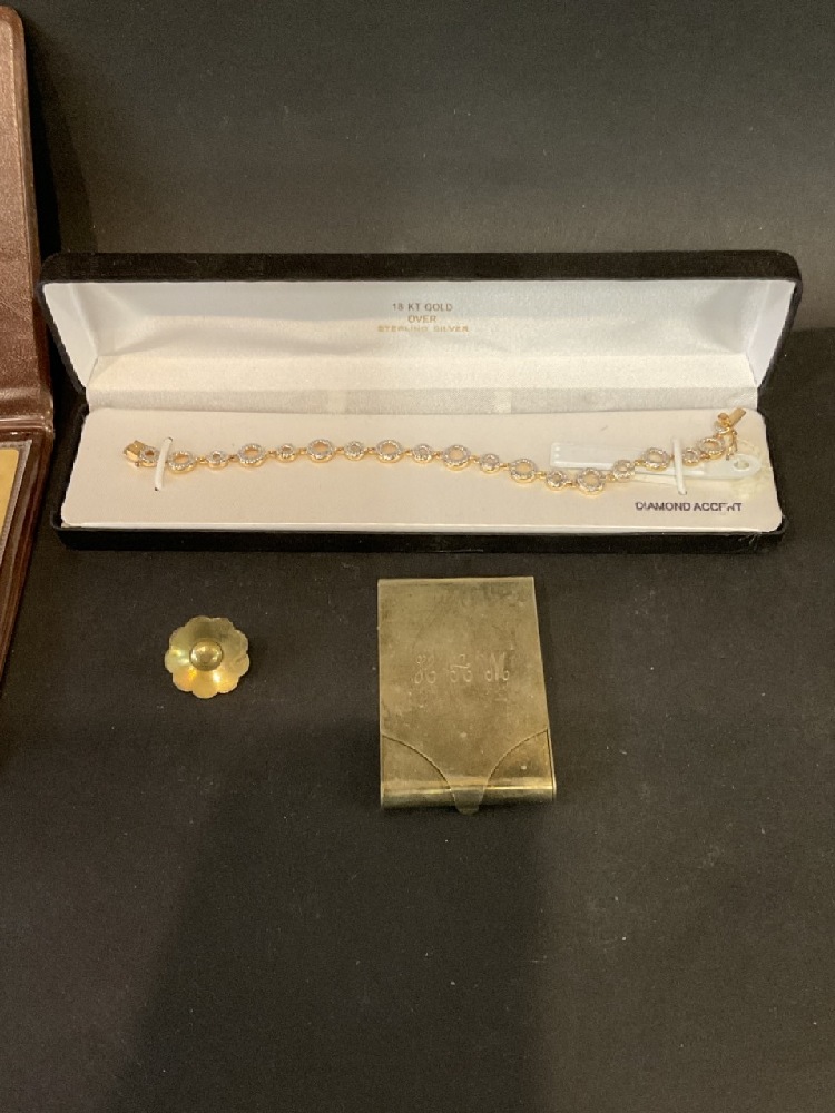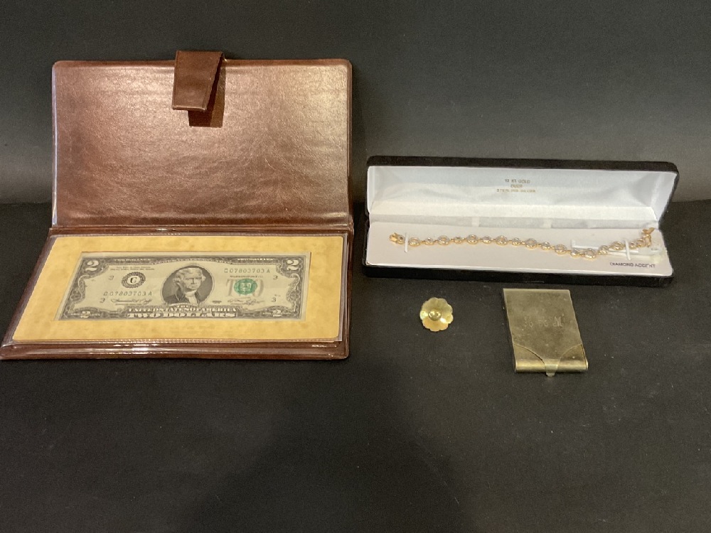 Miscellaneous Lot - 18k Over Sterling Silver Bracelet & $2 Bill