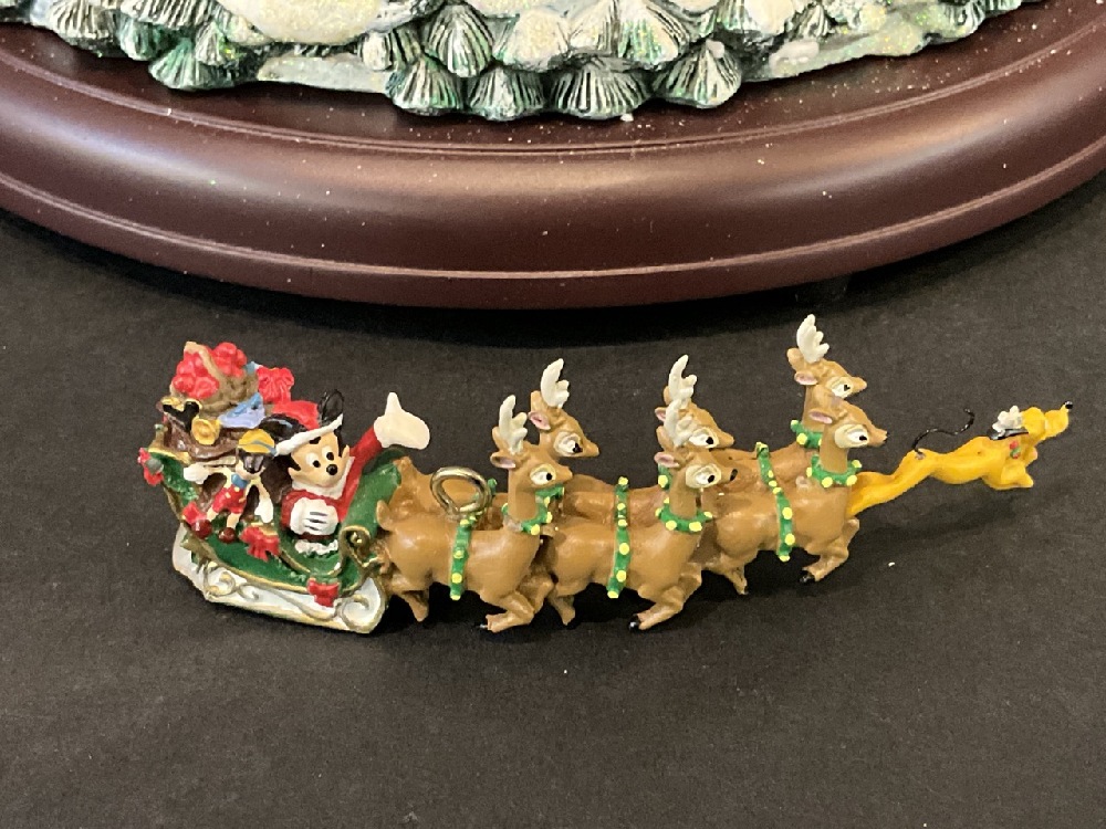 Missing the hook the holds Mickey and his sleigh.