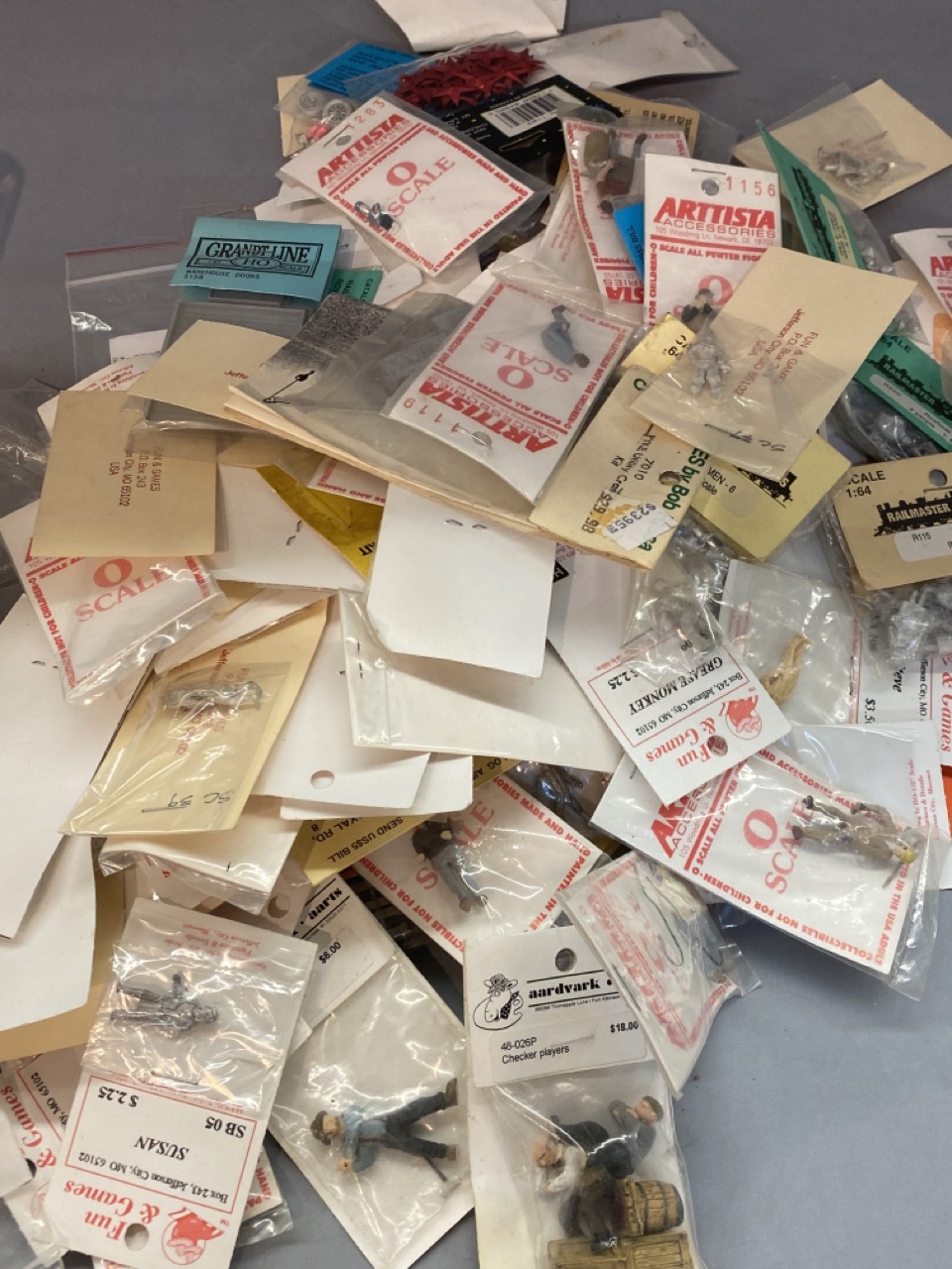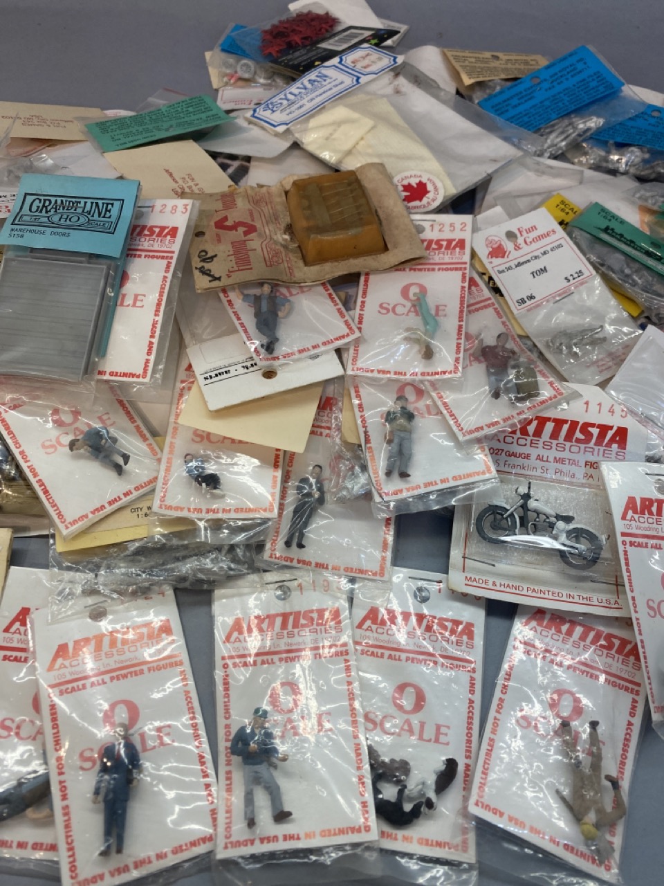 100+ packages of O scale train accessories including Artista, Railmaster Exports, Steel Structures and various misc. New/Old stock.