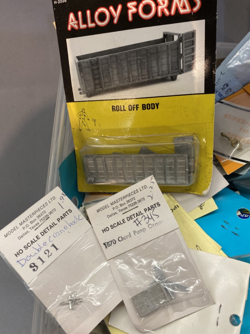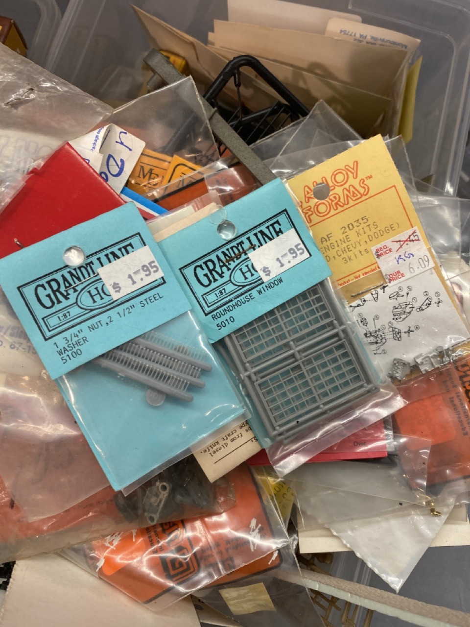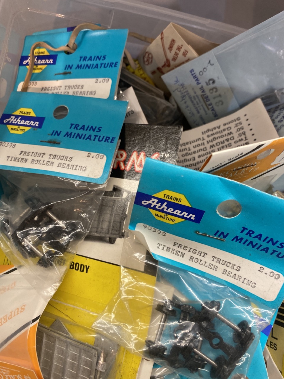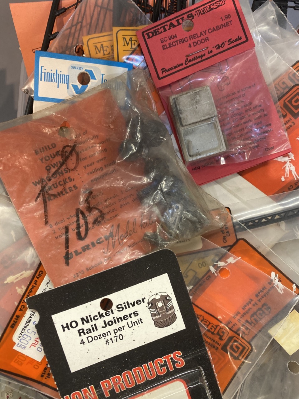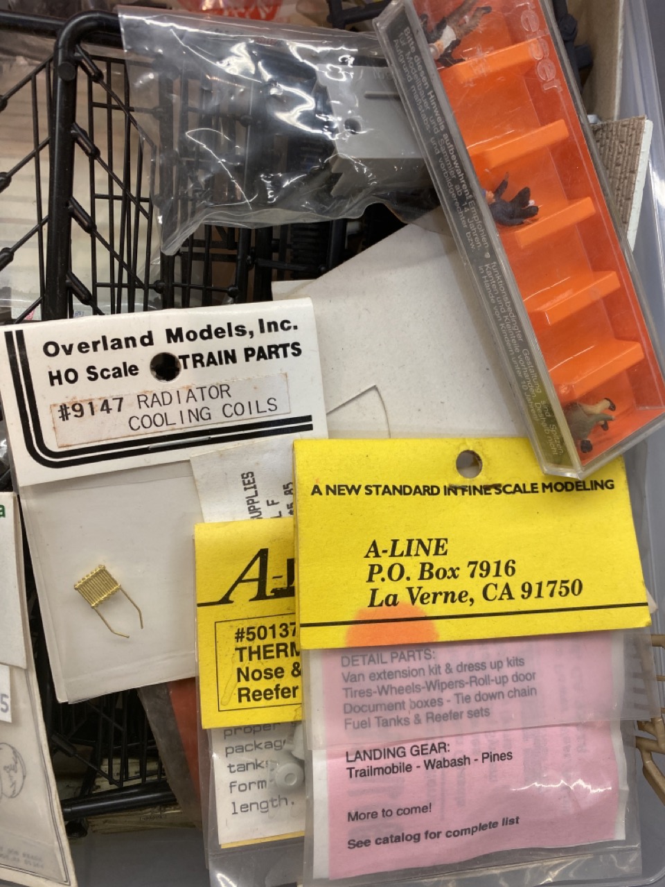 100+ piece new old stock HO scale train accessories and parts by Athearn, Wooldland Scenics, Overland Models etc.