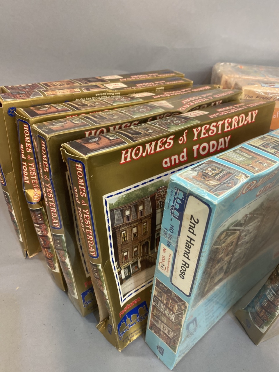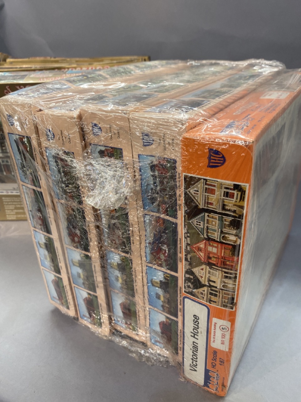 Twelve {12) Homes Of Yesterday And Today. HO scale gingerbread houses by International Hobby Corp. New still sealed in packages. Some boxes dented and worn.