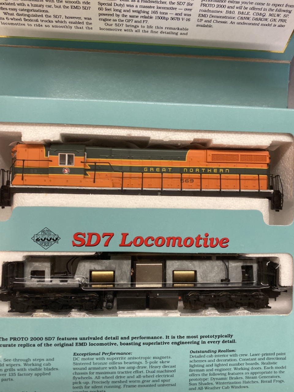 5 boxed Proto 2000 series HO train sets Models SD7, E 8/9, and E7 .